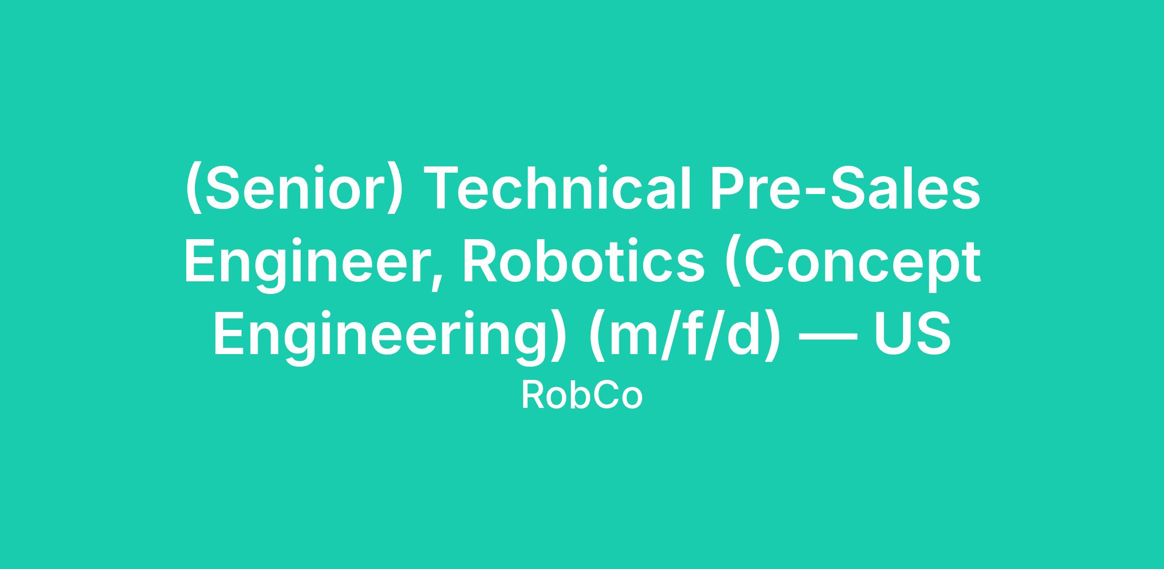 What makes this role unique: This is not a classic sales engineering or system integrator position. At RobCo, you design real automation solutions that combine modular robotics hardware with AI-driven software (e.g., vision, motion, autonomous behaviors).