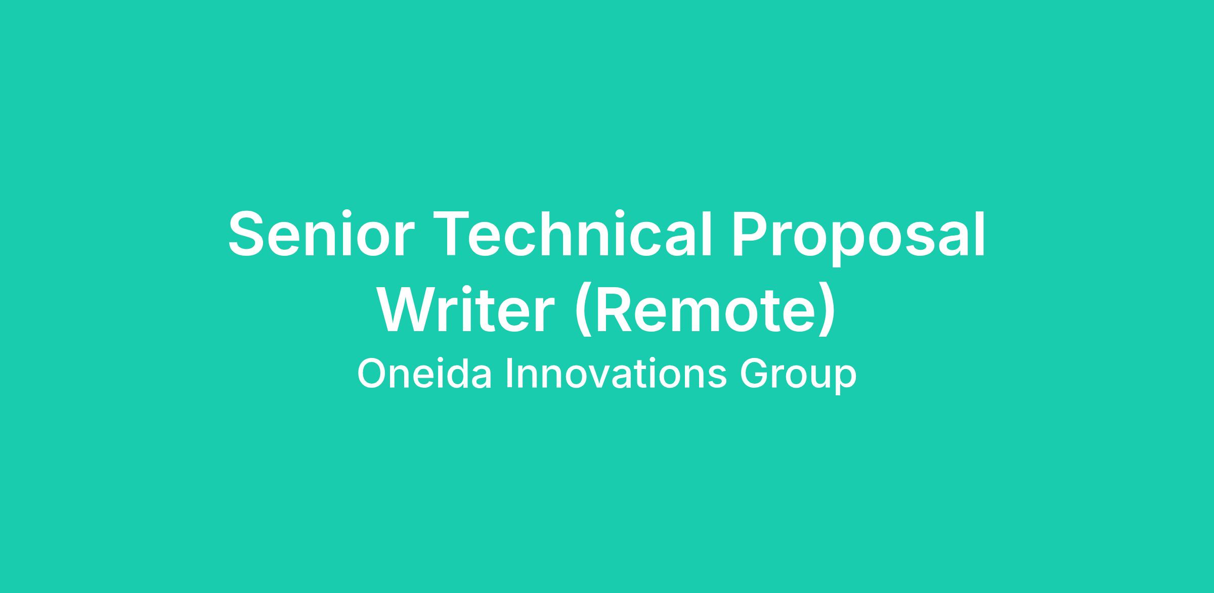 The Technical Proposal Writer will be responsible for authoring a wide variety of content to support the needs of Oneida Technical Solutions' growing Business Development team. The successful candidate will have experience in deeply technical environments, showcasing an ability to author new or edit existing content related to cybersecurity, software development, network and telecommunications engineering, and general IT support services. Experience working in the Federal/DoD space is strongly preferred.