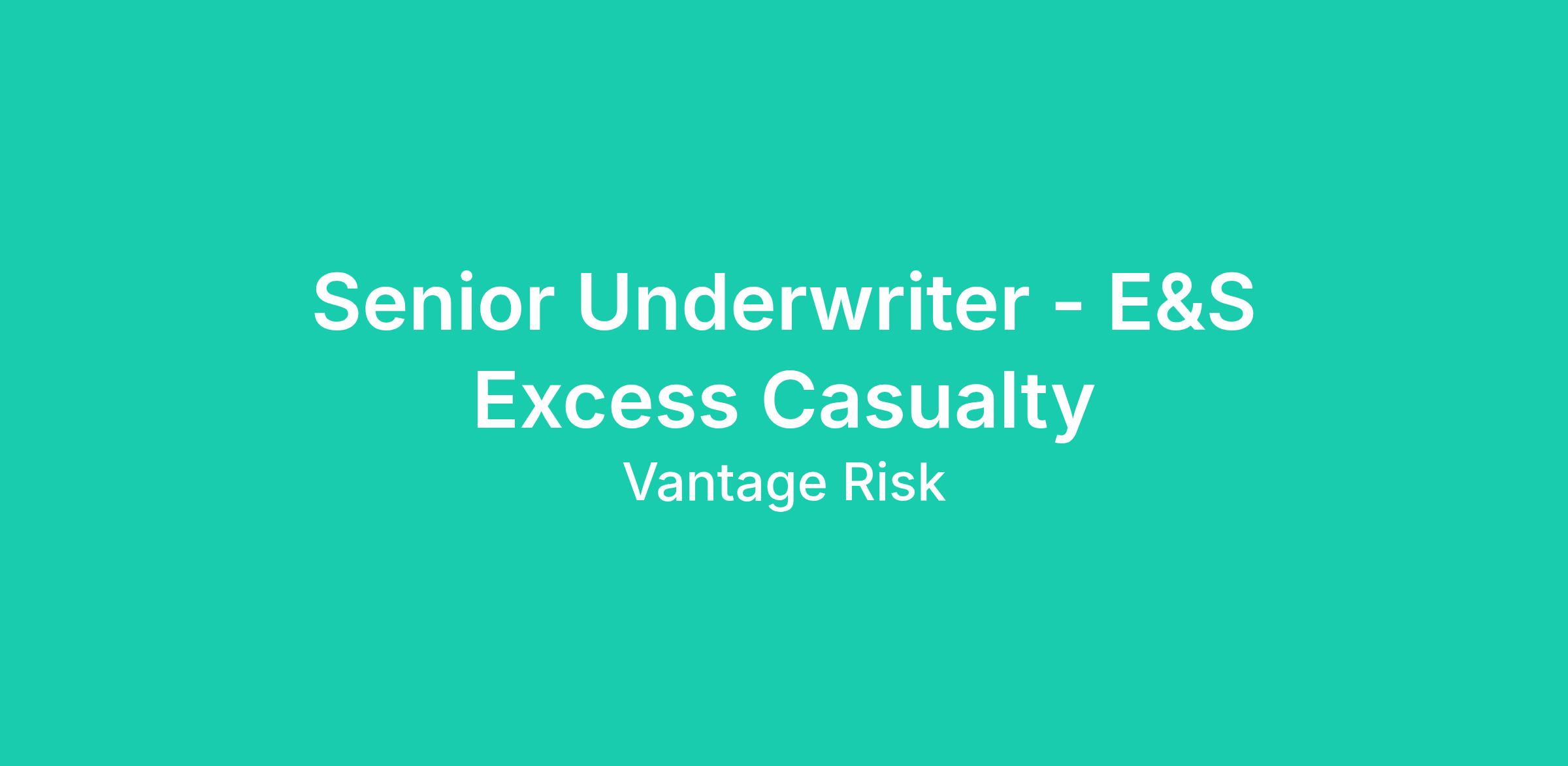 At Vantage, the Senior Underwriter - E&S Excess Casualty is a member of our Excess Casualty team. The mission of the Excess Casualty team is to add creativity to tech-enabled efficiency and robust analytics to address risks others avoid. This role is responsible for underwriting according to authority level and established guidelines. Reporting to the Underwriting Manager - Excess Casualty, this is a remote opportunity, or a potential hybrid opportunity if the candidate is within commuting distance of one of Vantage’s office locations.