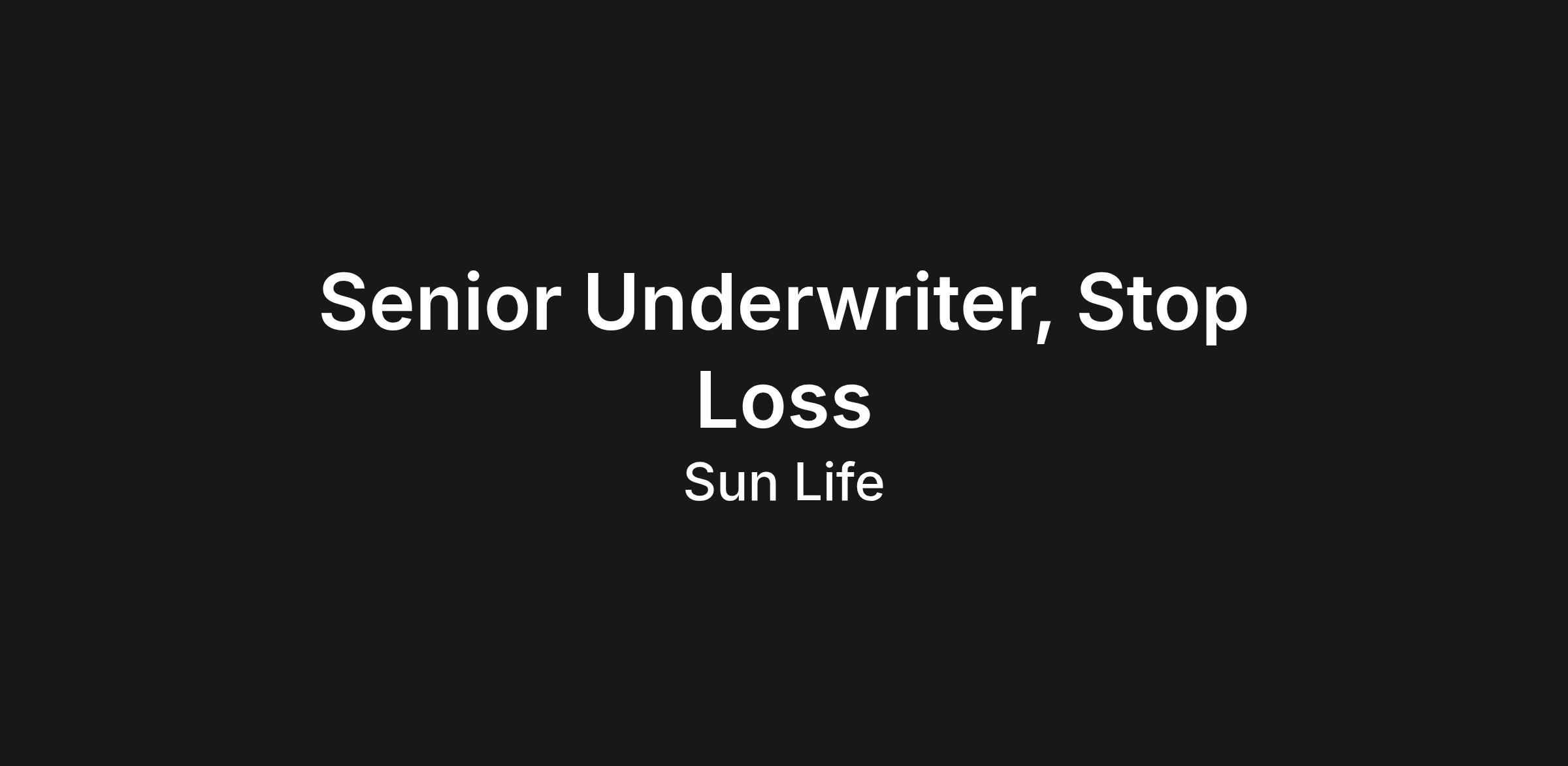 The opportunity: Sun Life is seeking a passionate individual who can exercise independent and creative thinking to achieve defined sales and profitability goals to join us in a Senior Underwriter, Stop Loss role.
