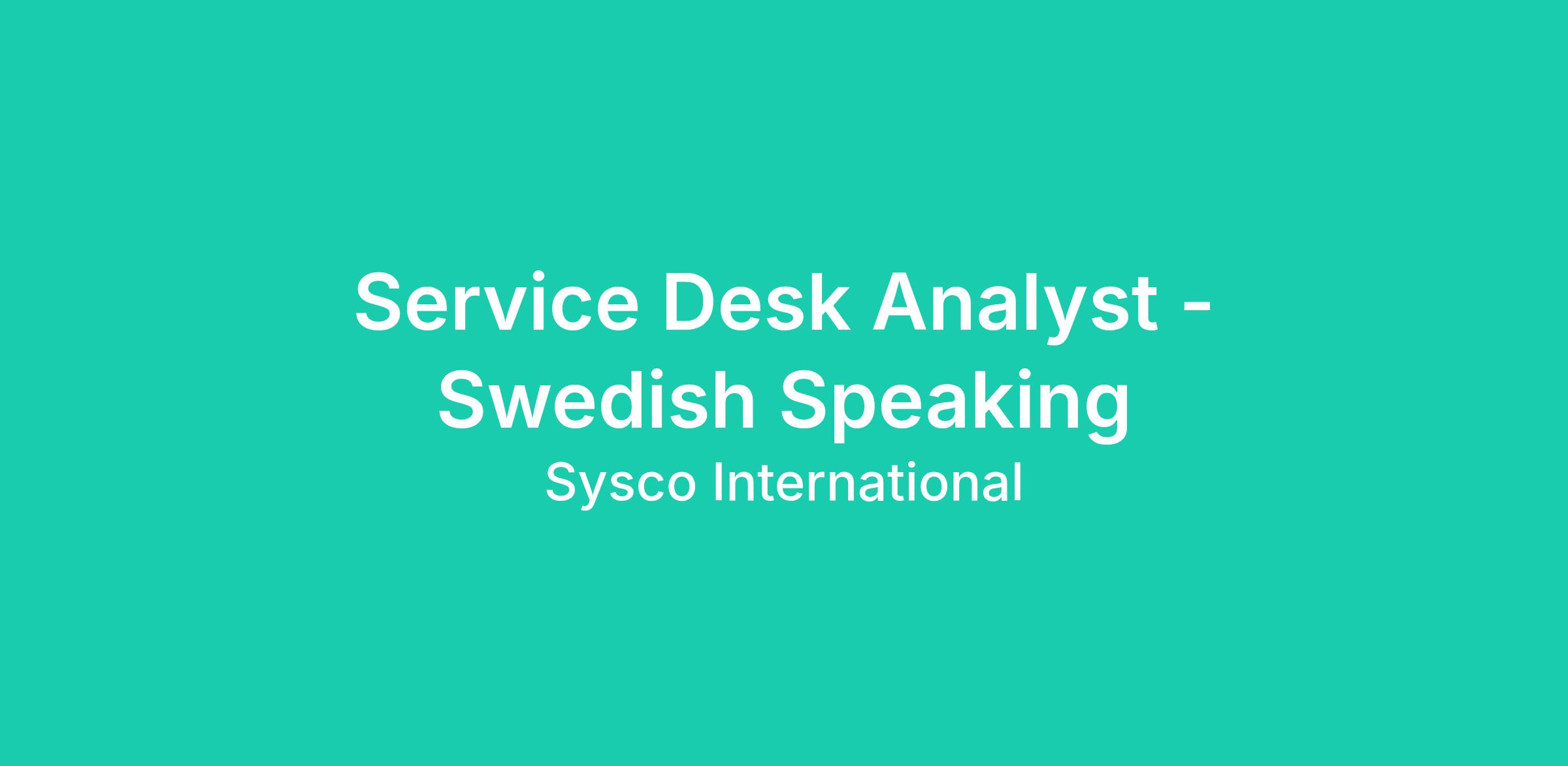 Service Desk Analyst - Swedish Speaking
