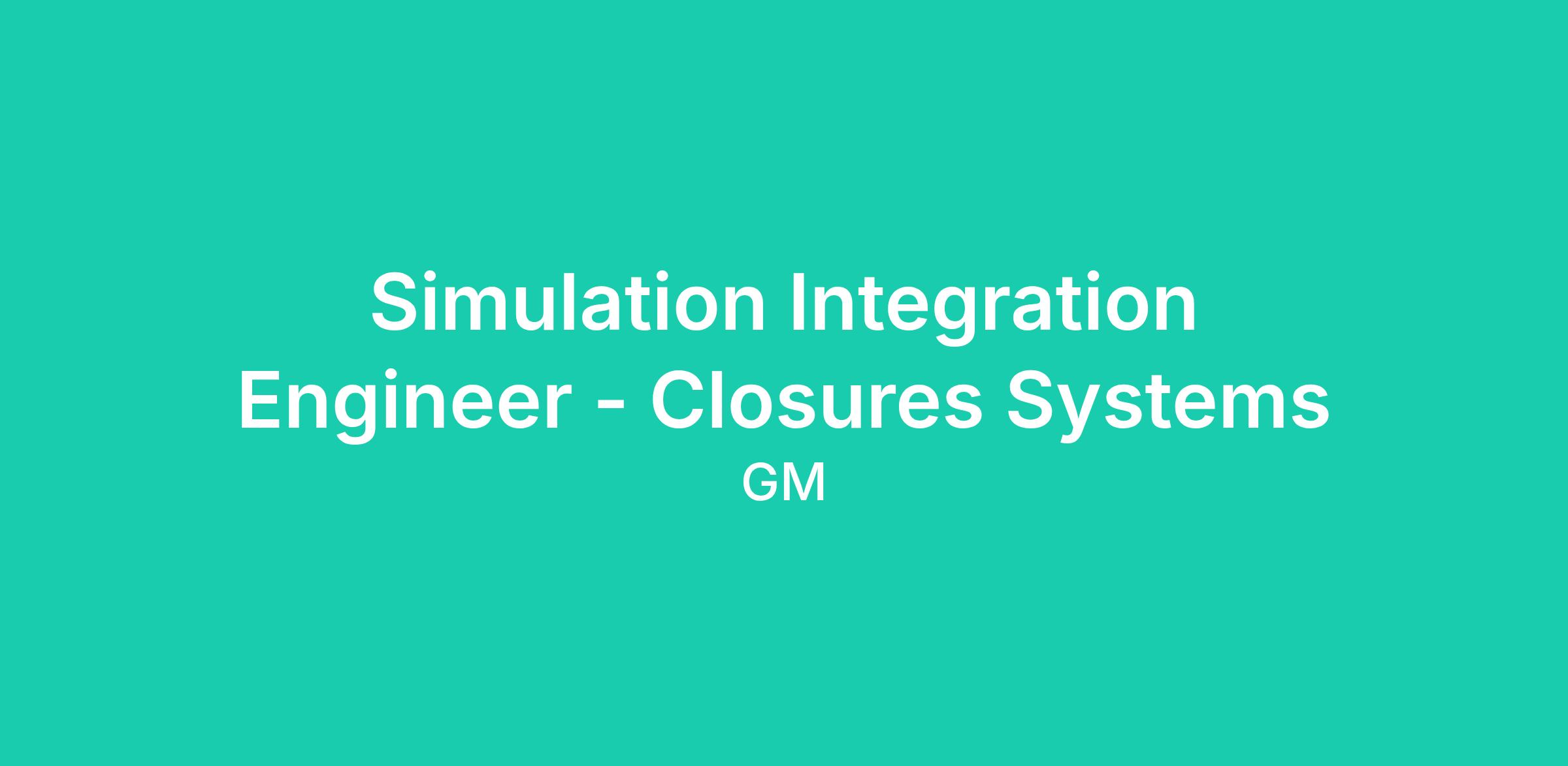 The Simulation Integration Engineer- Closures Systems is responsible for supporting the move to virtual engineering by leading the integration of closures systems cross-functional co-simulation packages focused on power closures calibration and related disciplines. This position is highly technical and collaborative, involving partner teams throughout Virtual Design Development and Validation (VDDV), Vehicle Performance, Validation, Global Vehicle Hardware Engineering and Vehicle Software and Electronics Engineering. The role deals with multiple emerging technologies, and constant pursuit of innovation is key to its success.