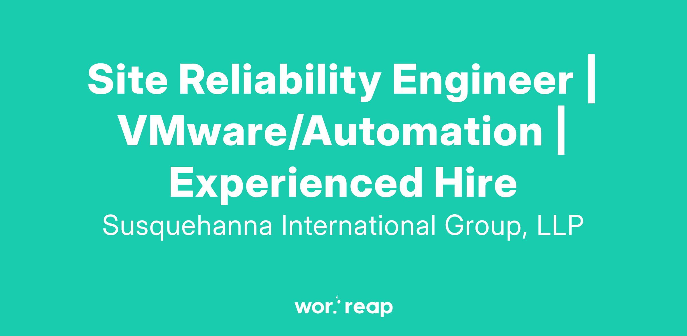 Susquehanna is looking for a Site Reliability Engineer with a focus on Virtualization and related Automation skills to join our team. This is a great opportunity to leverage your VMware and scripting skills to enhance our growing environment with automation and tooling.