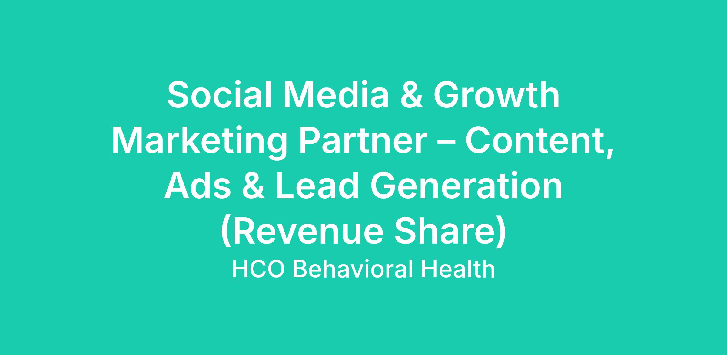 Social Media & Growth Marketing Partner – Content, Ads & Lead Generation (Revenue Share)