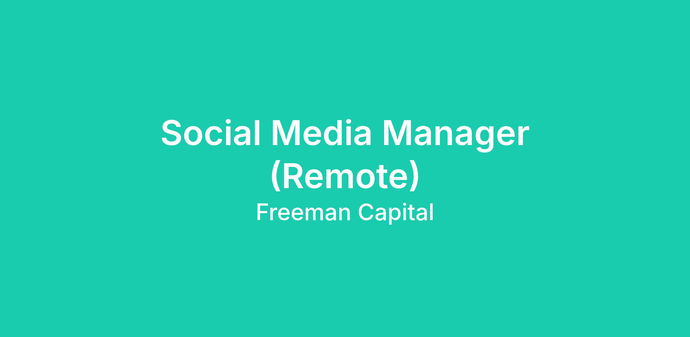 Freeman Capital is seeking a Social Media Manager who will assist in the development and implementation of its social media strategy specifically with digital community content management and distribution on our various social media platforms. Our goal is to continue to build our community that is welcoming, educational, relevant and will ultimately turn positive word-of-mouth into secured customers. We work 100% remotely using tools like Slack/Zoom.