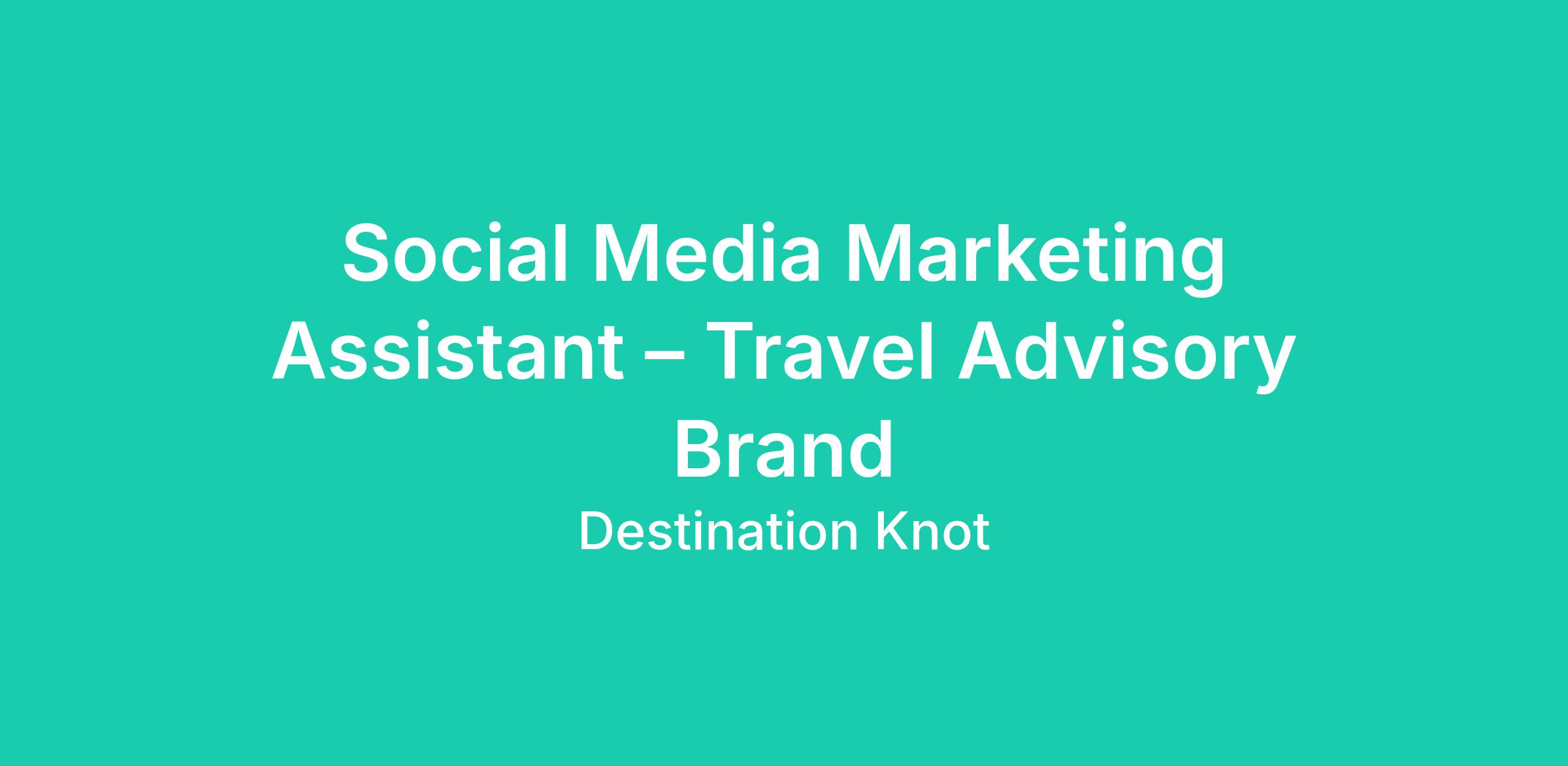 We are seeking a creative and detail-oriented Social Media Marketing Assistant to support digital marketing initiatives for a travel advisory brand. This role focuses on content creation, audience engagement, and brand visibility across social media platforms.