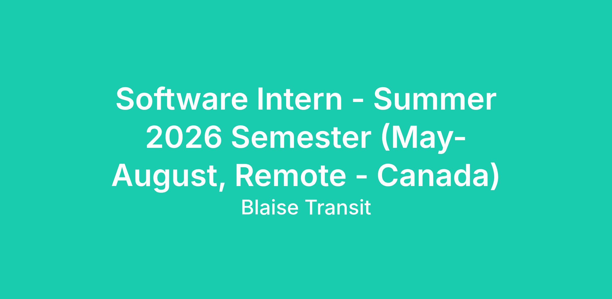 Software Intern - Summer 2026 Semester (May-August, Remote - Canada)