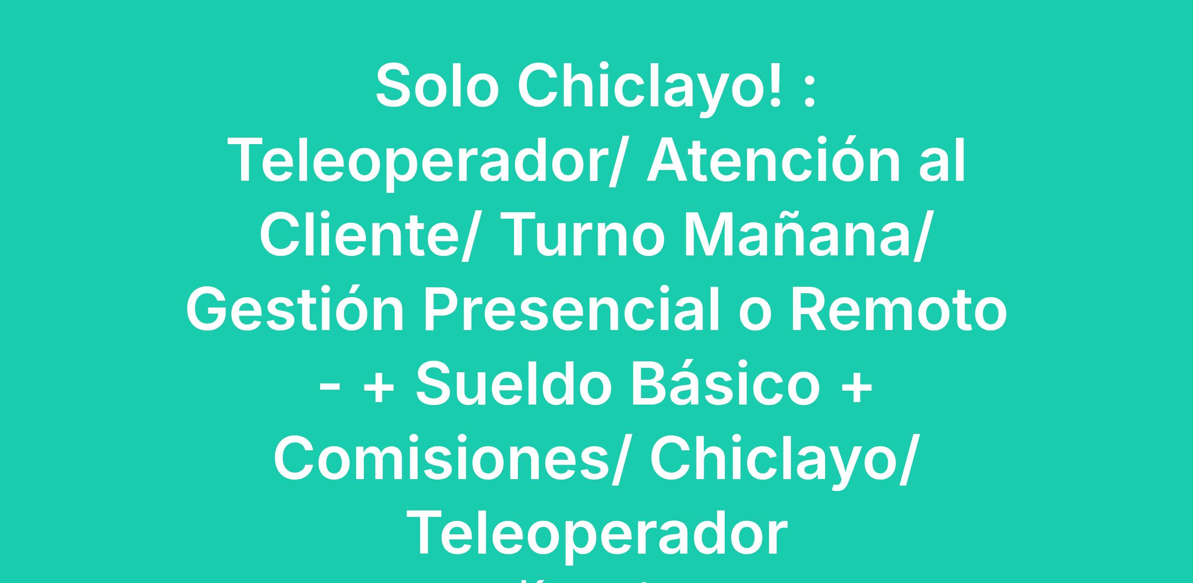 Solo Chiclayo! : Teleoperador/ Atención al Cliente/ Turno Mañana/ Gestión Presencial o Remoto - + Sueldo Básico + Comisiones/ Chiclayo/ Teleoperador