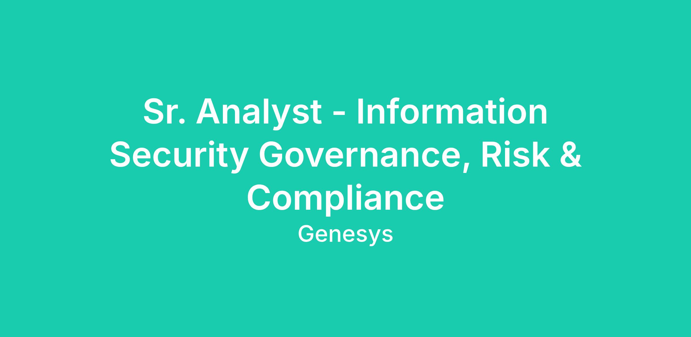 The Information Security Governance, Risk & Compliance Analyst will play a key role as part of a group of Information Security Compliance professionals responsible for operational services related to the Information Security Compliance program, facilitating Governance, Risk, & Compliance activities related to various compliance and regulatory requirements, and working with cross-functional teams throughout the company and audit/assurance services for the implementation of security controls.