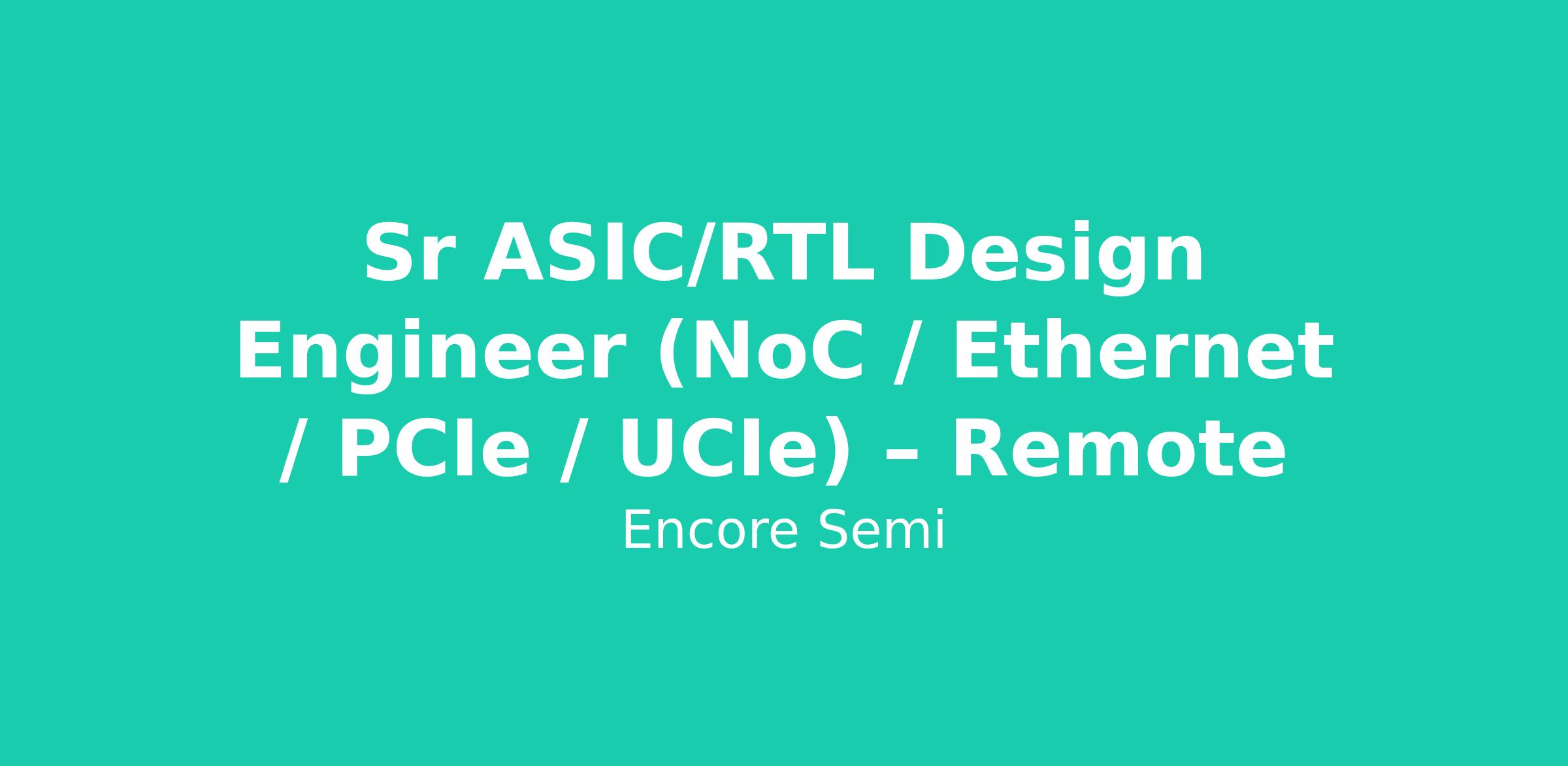 Sr ASIC/RTL Design Engineer (NoC / Ethernet / PCIe / UCIe) – Remote