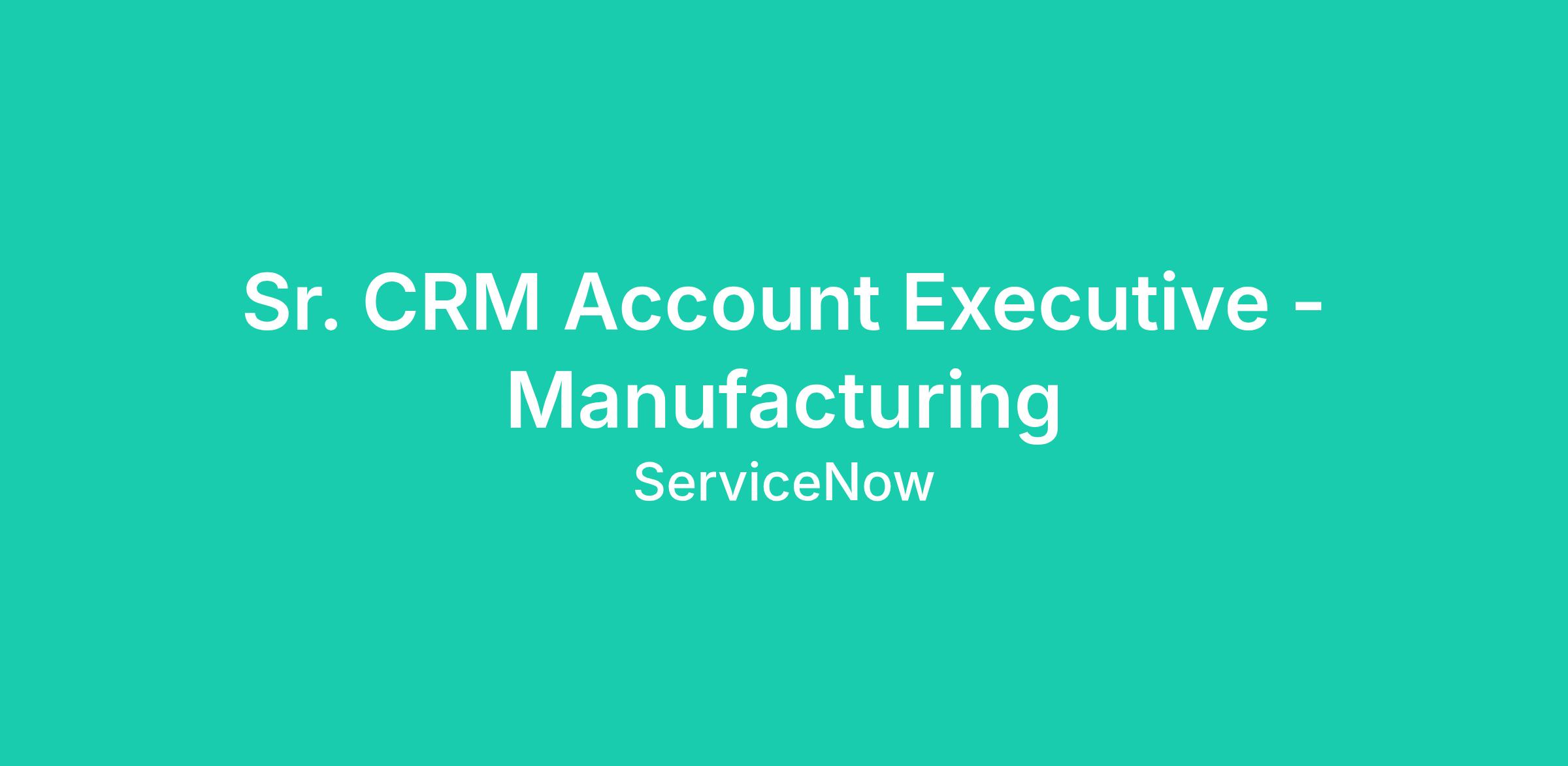 The Sr CRM Account Executive - Manufacturing will oversee market success of ServiceNow's CRM products. These products are built on our market leading Service Management platform and create a single source of truth that allows enterprise processes to execute with uniform information.