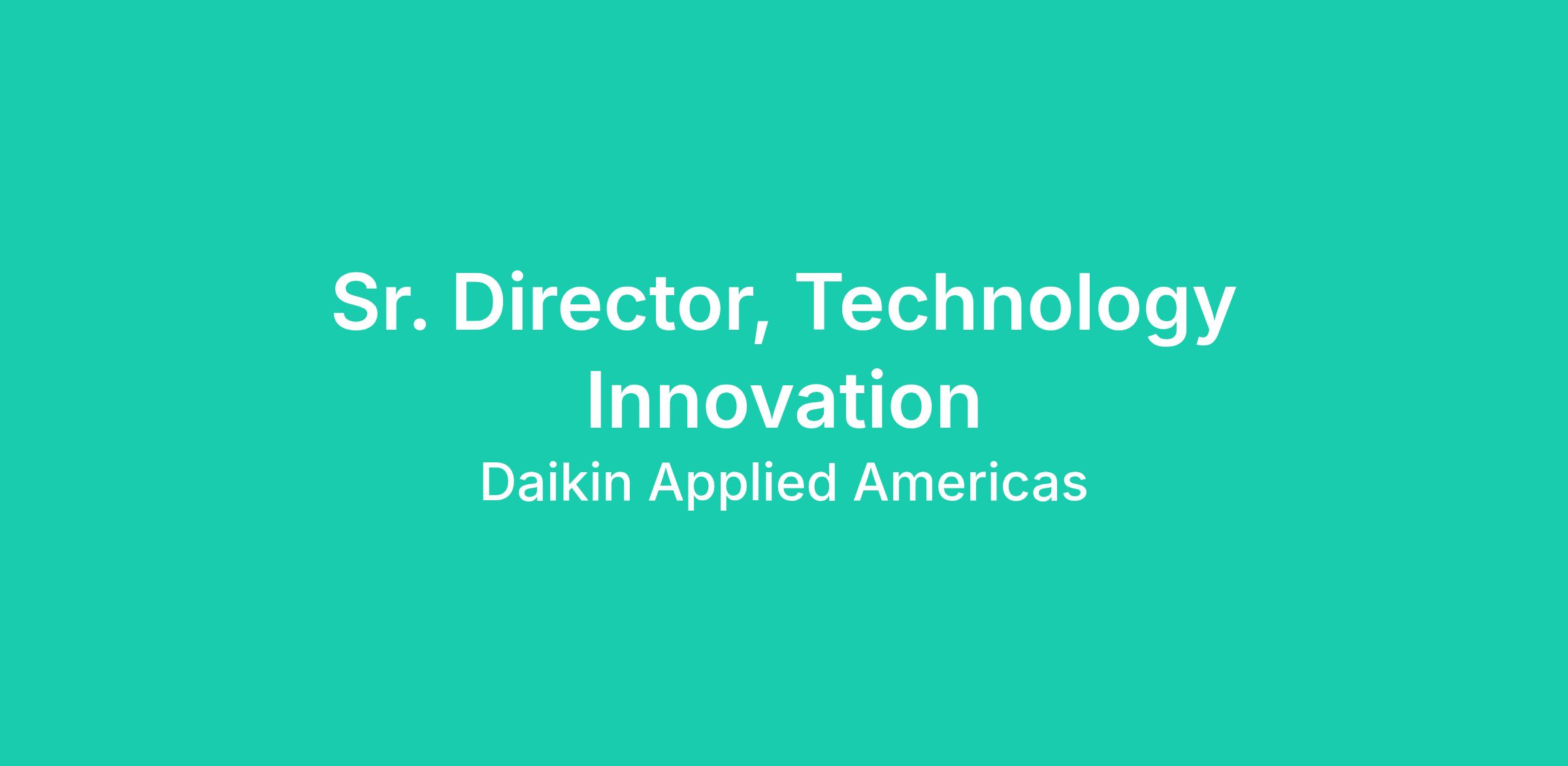 Daikin Applied is seeking a talented Sr Director of Technology Innovation. The Sr Director of Technology Innovation will drive strategic growth through software engineering and technology innovation. With general guidance, you will evaluate, deploy, and scale enterprise technologies and drive innovation to support our solutions business transformation. The focus will be on software engineering, application development, integration, architecture, emerging technology, AI, ML and customer facing technology such as BMS and IoT. Come be a part of an exciting journey at Daikin Applied, where innovation and excellence drive our every endeavor!