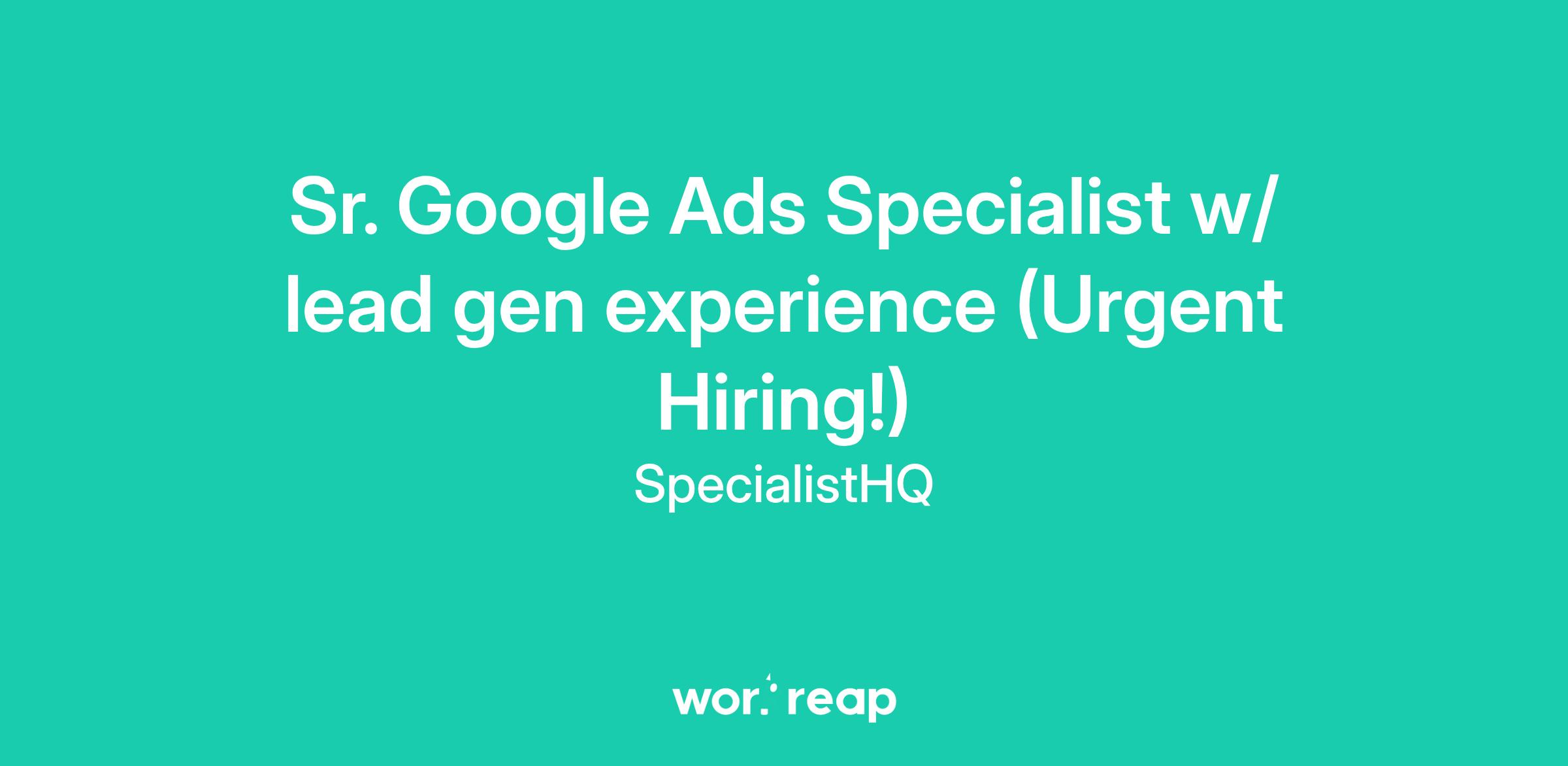 Sr. Google Ads Specialist w/ lead gen experience (Urgent Hiring!)