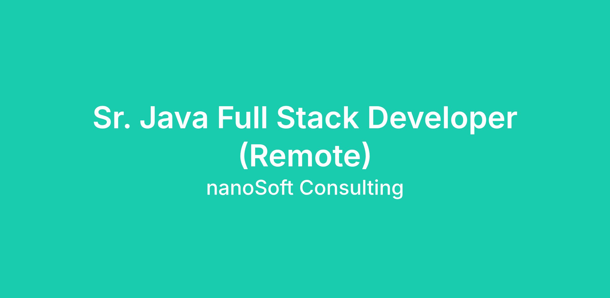 Nanosoft Consulting is looking for qualified candidates for a Sr. Full Stack Java Developer position at our remote area client.