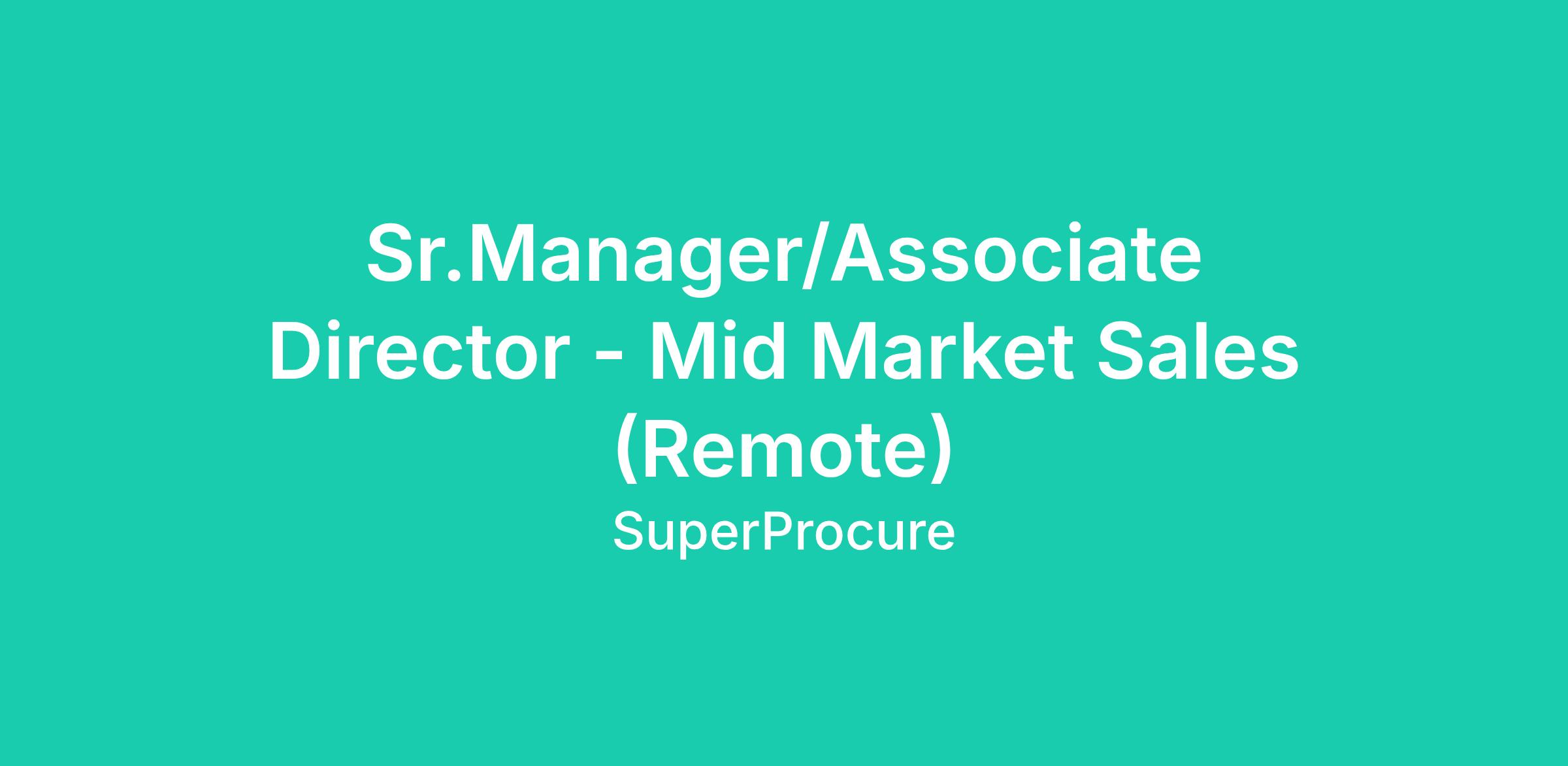 Sr.Manager/Associate Director - Mid Market Sales (Remote)