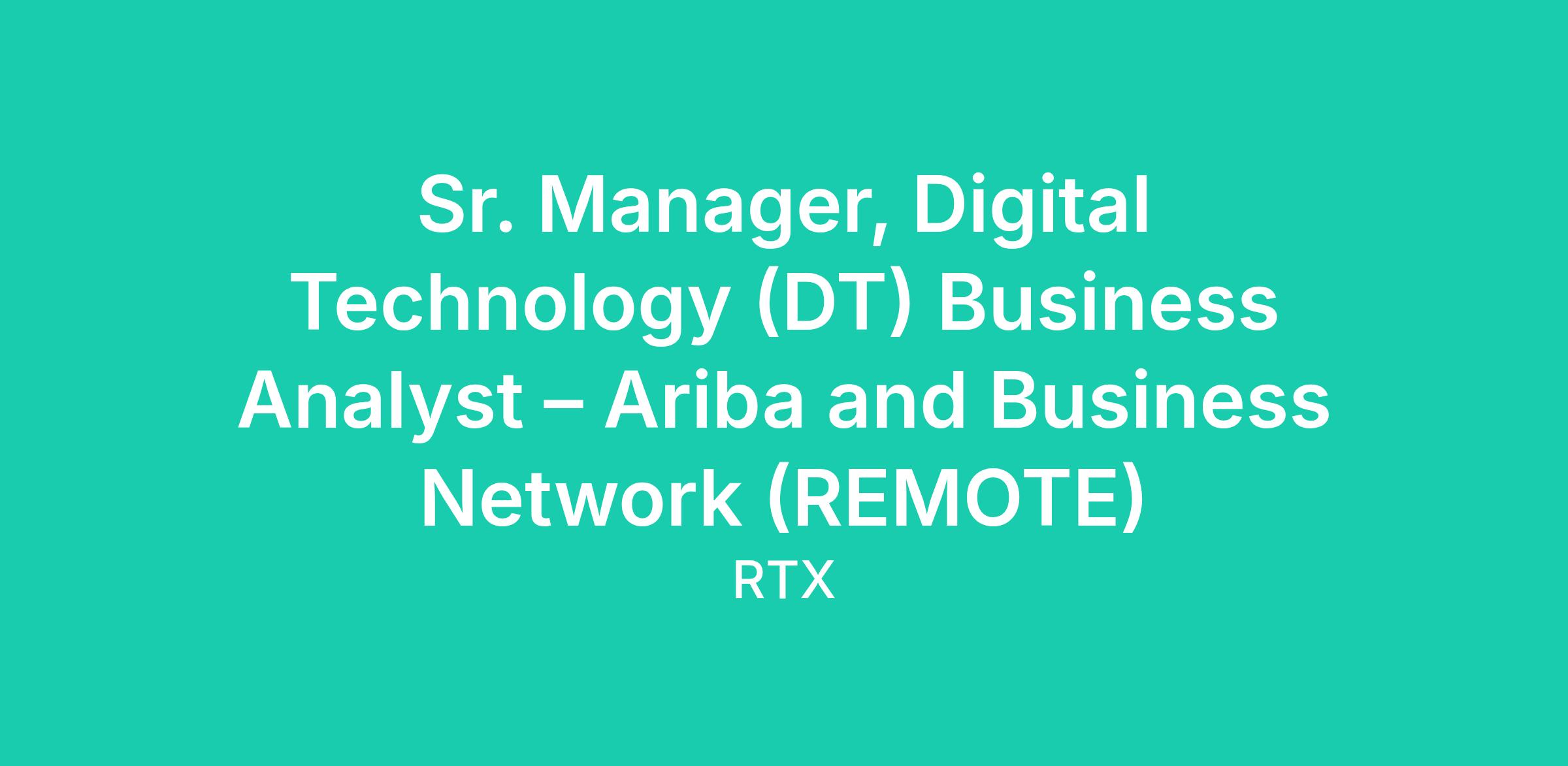 RTX has an opening for a Sr. Manager, Digital Technology (DT) Business Analyst – Ariba and Business Network (Sr. Manager, Business Systems and Transformation) position.