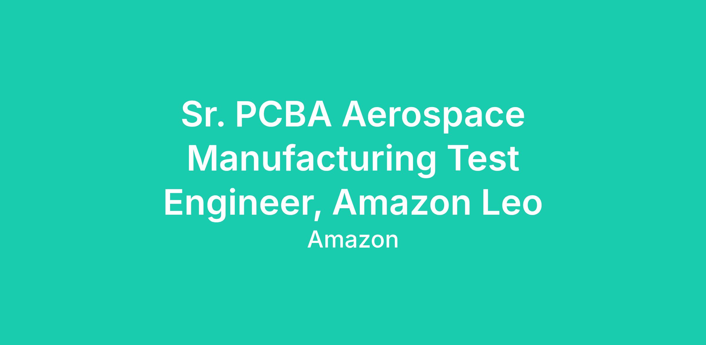 Come solve the difficult and rewarding engineering challenges in developing a highly reliable, power efficient, high performance, low-cost satellite system. As a Sr. PCBA Aerospace Manufacturing Test Engineer, you have the ability to dive deep on the details to identify, understand and solve difficult technical problems and also utilize a system level approach to prioritize issues for the whole program. You thrive in a hands-on environment and will spend time in the office, on the factory floor, at manufacturing partners, and in the lab to execute the Amazon Leo mission.