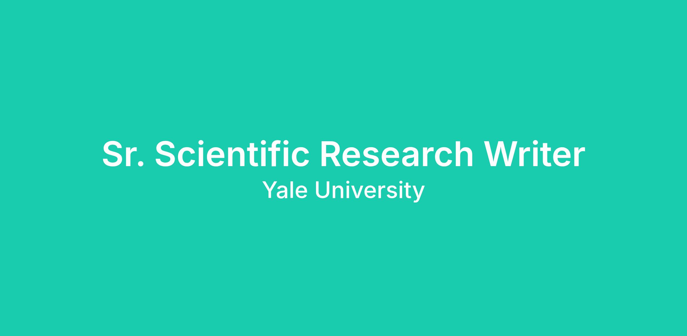 The Senior Scientific Research Writer reports directly to the Director of the Center for Aging Well, Yale School of Nursing, and works in close collaboration with YSN faculty investigators, center leadership, and research development and grants administration staff. The role engages with interdisciplinary collaborators across Yale schools and affiliated academic partners.