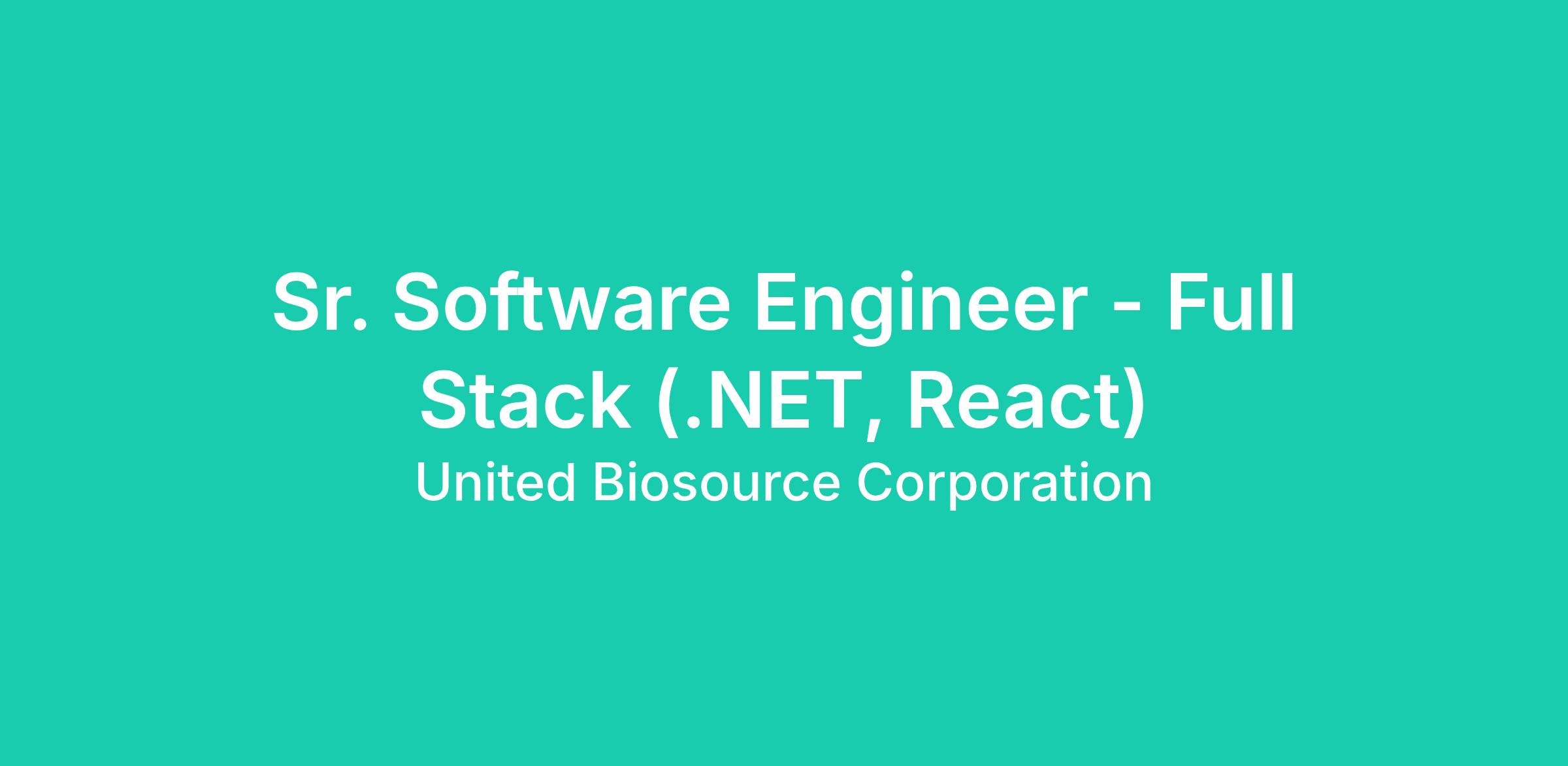 Sr. Software Engineer - Full Stack (.NET, React)