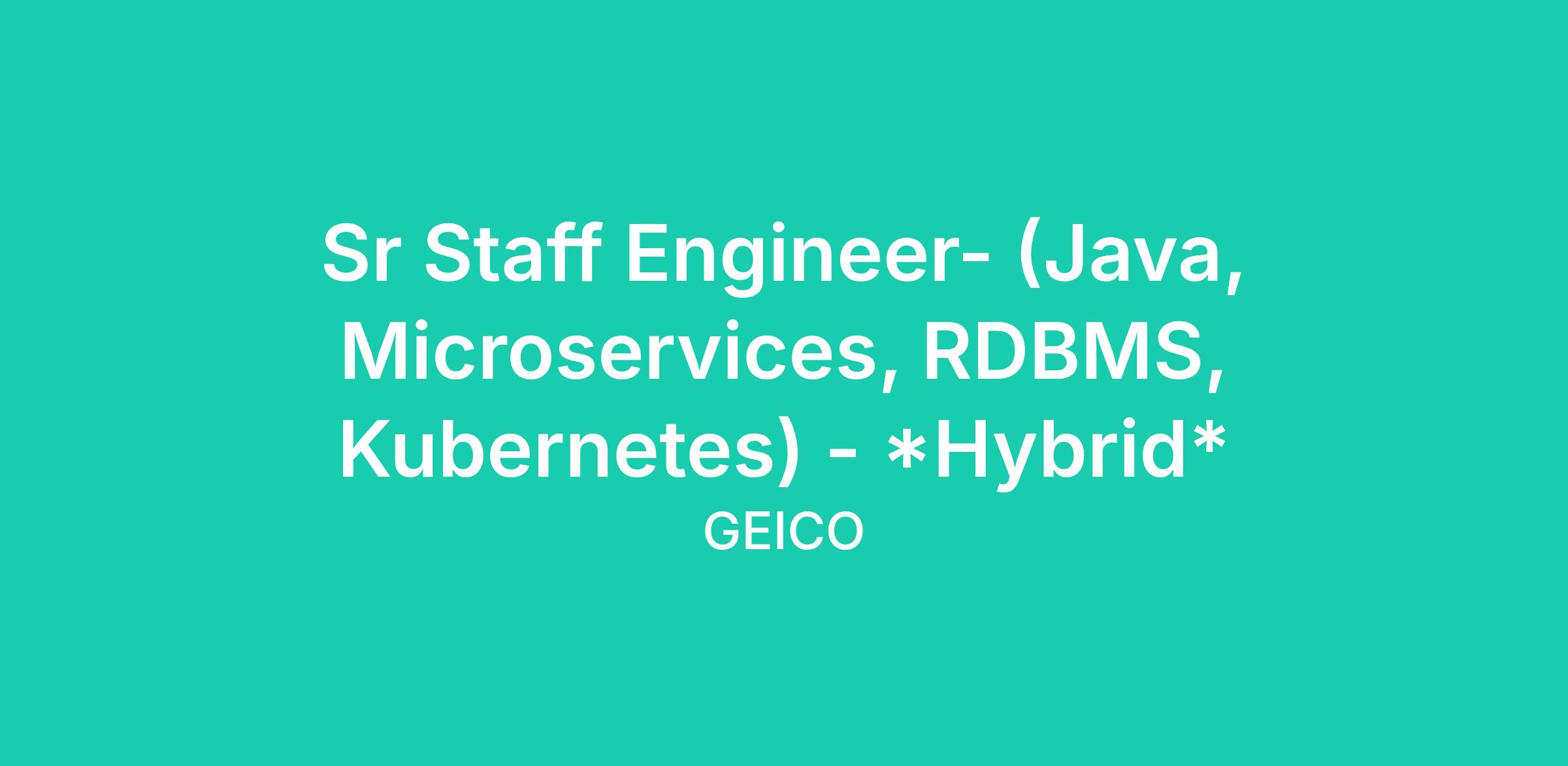 GEICO is seeking an experienced Senior Staff Engineer to build & scale next generation file transfer and file sharing platform to cater file sharing services within GEICO & between GEICO & its trusted external partners. You will help drive our insurance business transformation as we redefine experiences for our customers.