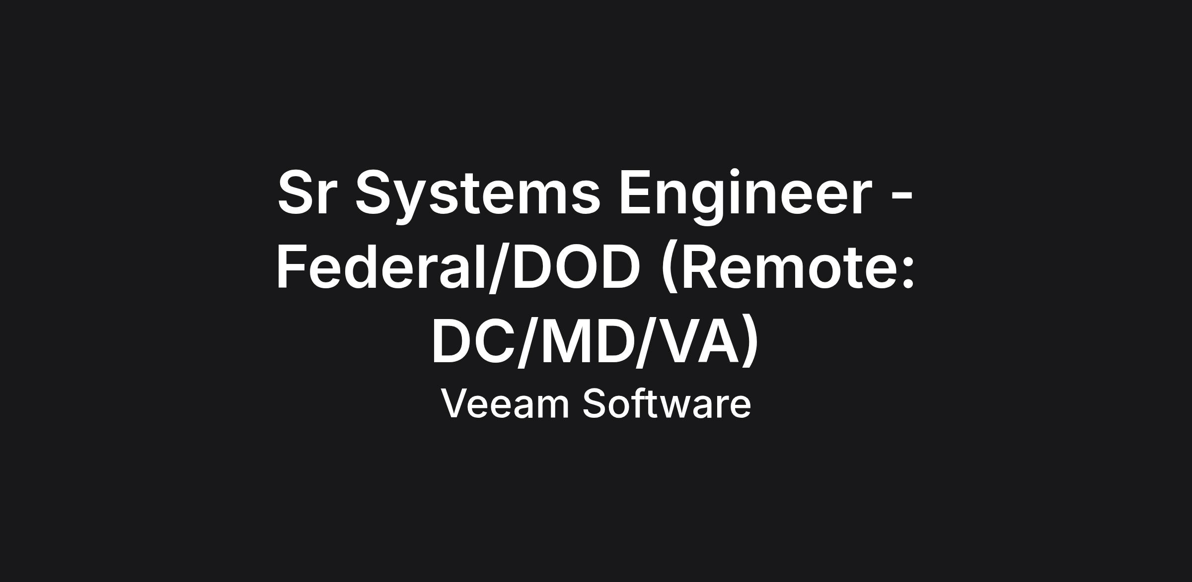 The Sr. Systems Engineer is responsible for working closely with the federal sales department and engineering management to help inform, educate and influence partners, resellers and end users of our product offerings. Responsibilities excellent presentation skills and present Veeam messaging to varying numbers and levels of decision makers within DoD. You will be responsible for the creation of content and delivery of demonstrations to support Veeam Federal messaging. The successful candidate will be a self-motivated, technically competent Veeam Systems Engineer with an ability to partner with other groups within the sales and support organization to close sales. The role requires strengths and a background in defining architectural strategies to guide customers toward the adoption of Veeam technologies.