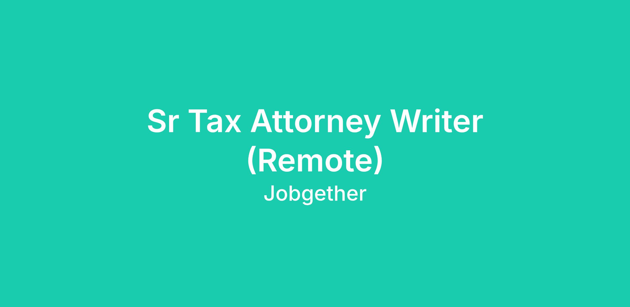 Sr Tax Attorney Writer (Remote)