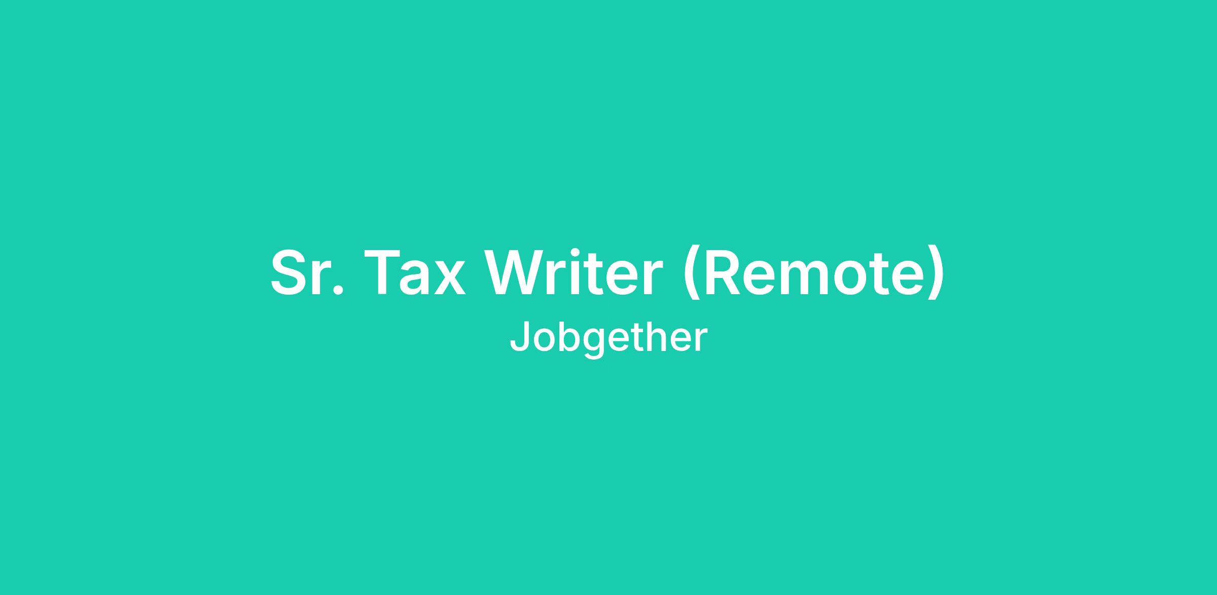 Sr. Tax Writer (Remote)