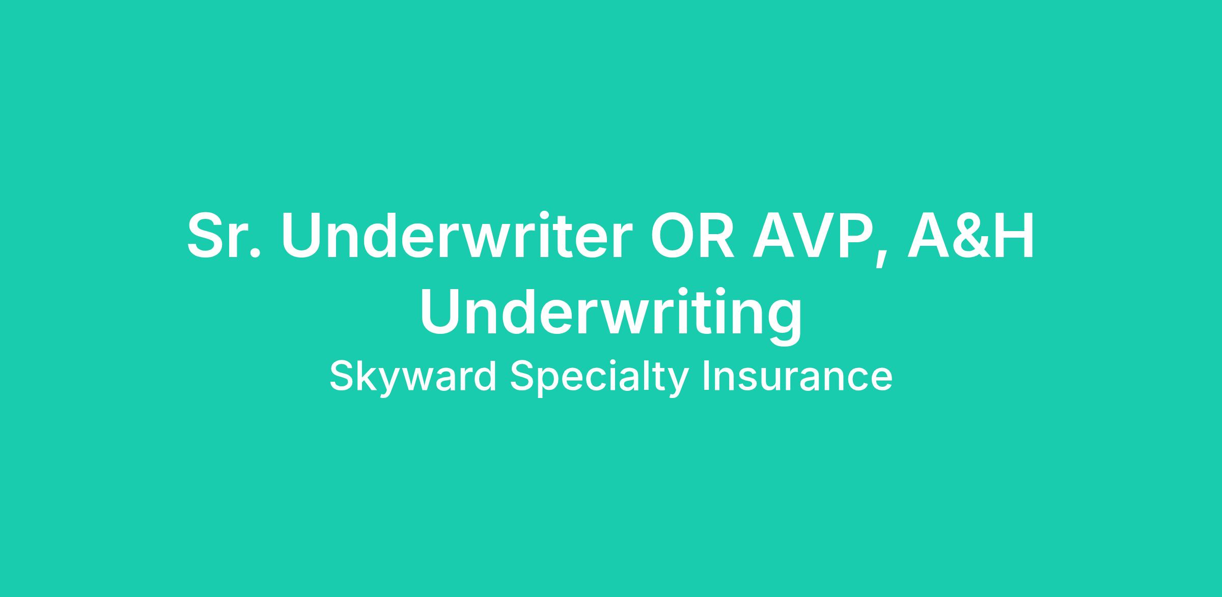 The Senior Underwriter OR AVP is responsible for underwriting new and renewal medical stop-loss accounts at a profitable level. This role involves managing relationships with producers and customers to ensure alignment with overall company stop-loss goals. The Senior Underwriting position works closely with the other team members in the region and with the sales team to identify business and producers that most closely meet our underwriting acumen.