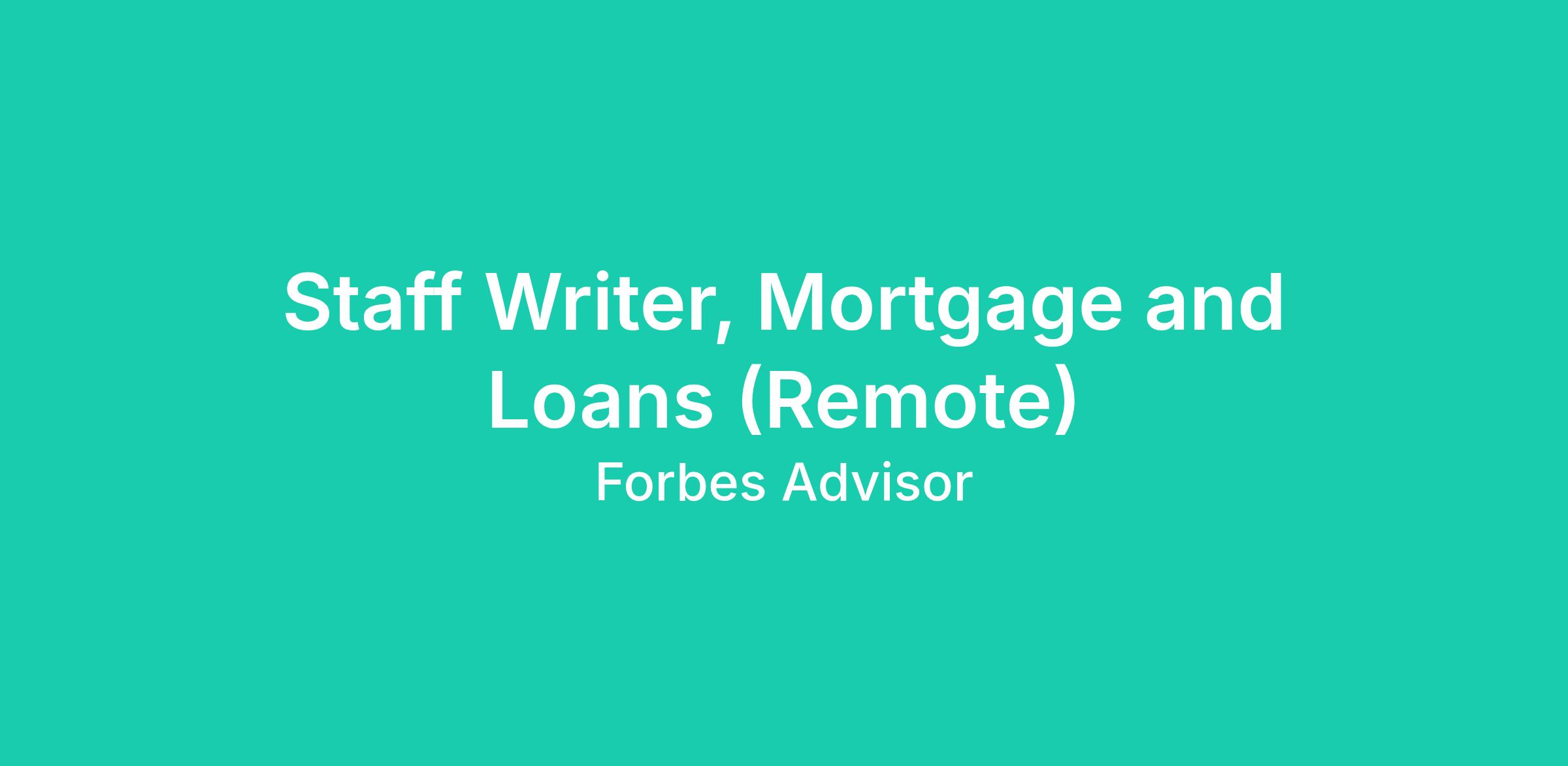 Forbes Advisor is looking for a Staff Writer with writing and editing experience to join the loans team. The loans section oversees consumer lending products, including personal loans, student loans, mortgages, auto loans, small business loans and other credit-related products.
