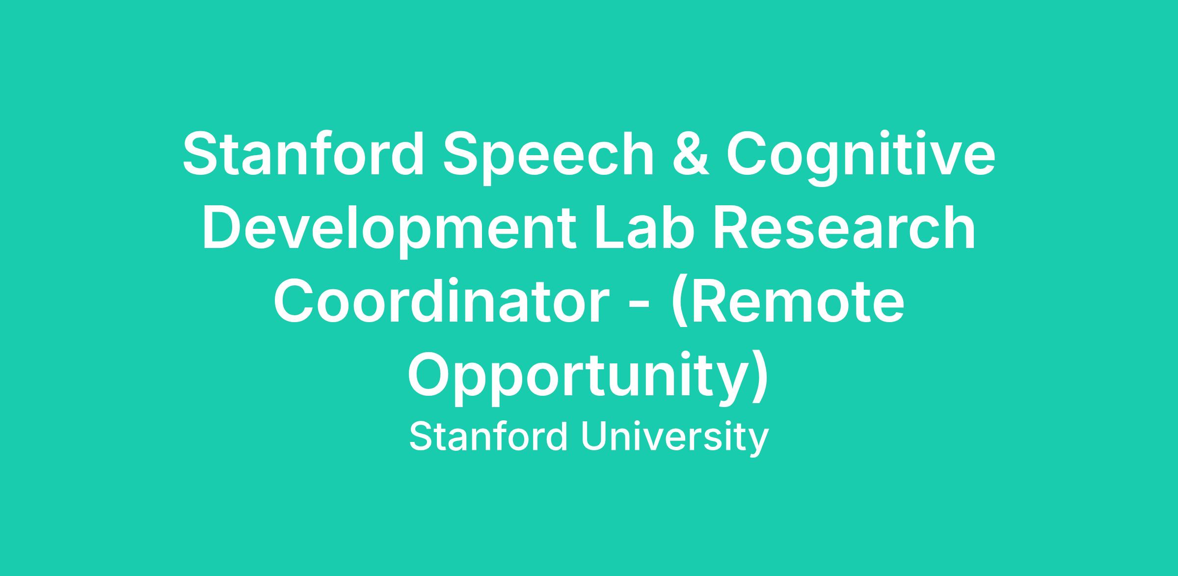 Stanford Speech & Cognitive Development Lab Research Coordinator - (Remote Opportunity)