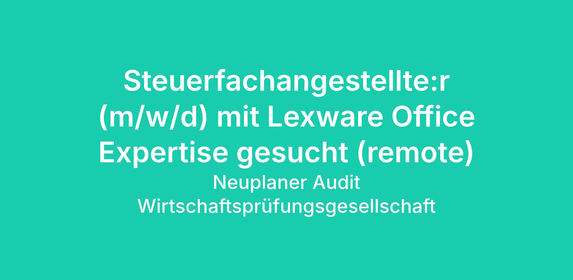 Steuerfachangestellte:r (m/w/d) mit Lexware Office Expertise gesucht (remote)