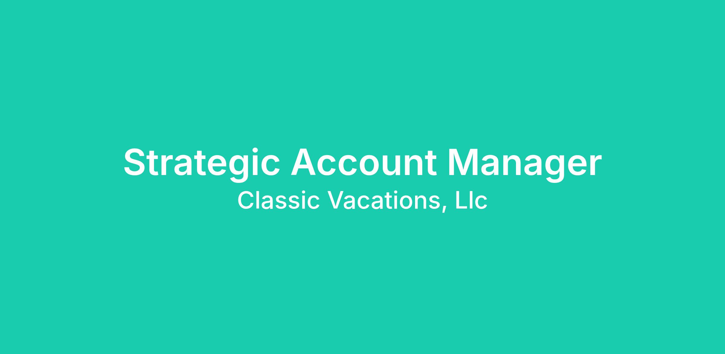 As the Strategic Account Manager for Classic Vacations, you will be at the forefront of our mission to redefine both premium and luxury travel experiences. This pivotal role combines strategic vision with hands-on leadership, aiming to drive our growth objectives while fostering a culture of collaboration and accountability. You will identify and secure new business opportunities that align with our goals, expand our client base, and establish strategic partnerships that enhance our market presence.