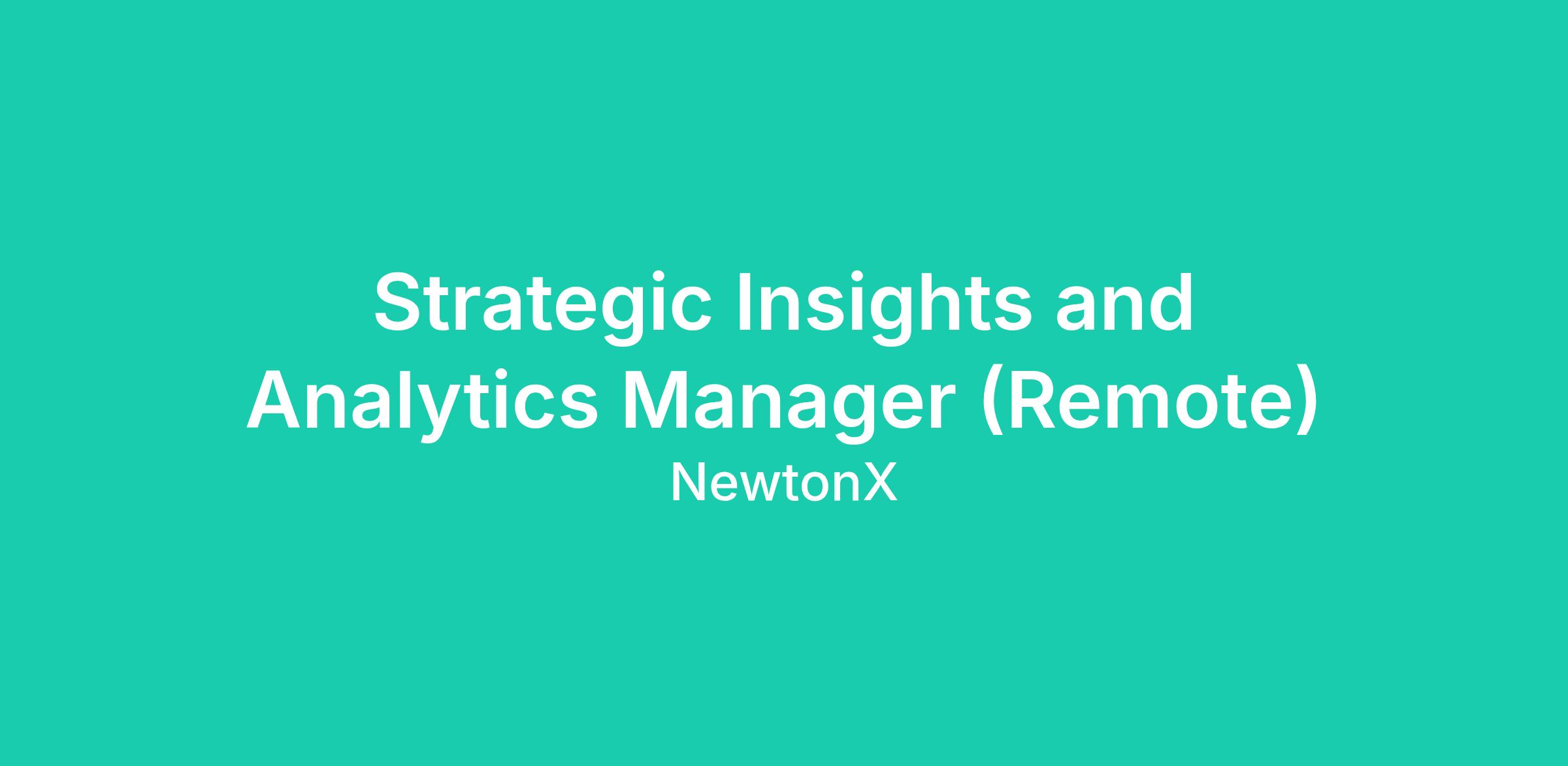 Strategic Insights and Analytics Manager (Remote)