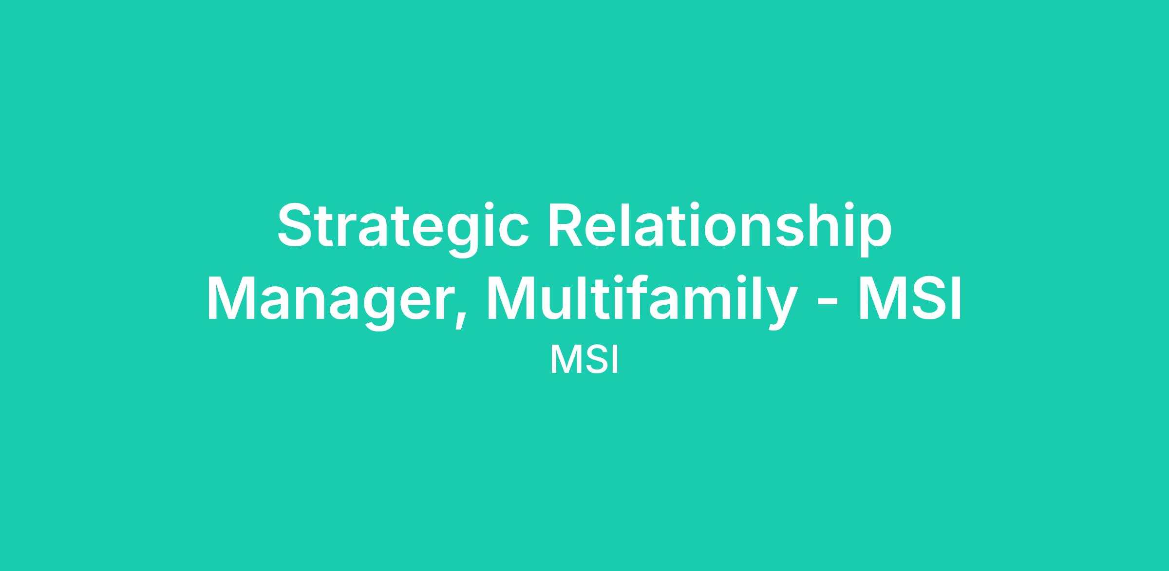 The Strategic Relationship Manager will report directly to the Head of Innovation & Growth and will be responsible for driving new business growth, expanding MSI’s presence in the multifamily market, and managing partner relationships. This role will focus on developing new distribution partnerships, deepening new and existing relationships and delivering a premium advisory experience. The successful candidate is a motivated sales professional who thrives in an external client-focused environment, can influence internal key stakeholders, and consistently delivers embedded insurance solutions that protect the assets of property managers, owner/operators, and tenants of their communities. Success is measured by consistent growth, exceptional partner experience, and disciplined sales execution.