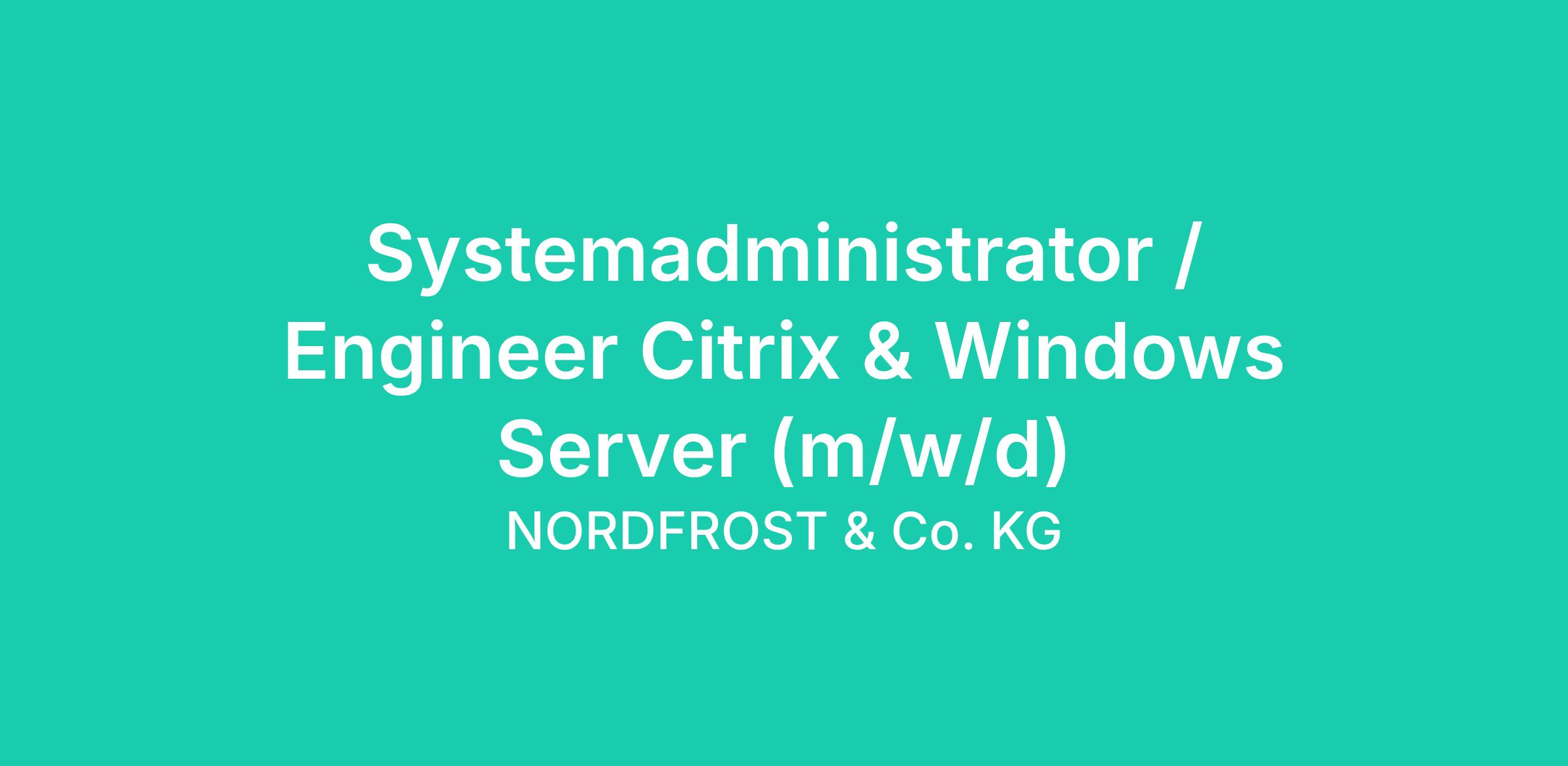 Die NORDFROST-Gruppe sucht zum nächstmöglichen Zeitpunkt einen erfahrenen Systemadministrator / Engineer (m/w/d) mit Schwerpunkt Citrix & Windows Server zur Verstärkung unseres IT-Teams. In dieser Position verantwortest Du den stabilen Betrieb unserer Citrix Virtual Apps & Desktops Umgebung sowie unserer Microsoft Windows Server Infrastruktur und entwickelst diese unter Berücksichtigung moderner Sicherheitsstandards kontinuierlich weiter. Du arbeitest gerne in komplexen IT-Infrastrukturen, möchtest spannende Projekte im Bereich Virtualisierung, Zero-Trust-Architekturen und Microsoft-Technologien umsetzen und Deine Expertise aktiv einbringen? Dann werde Teil der NORDFROST, dem Marktführer in der Tiefkühllogistik und gestalte die digitale Zukunft eines wachsenden Familienunternehmens mit.