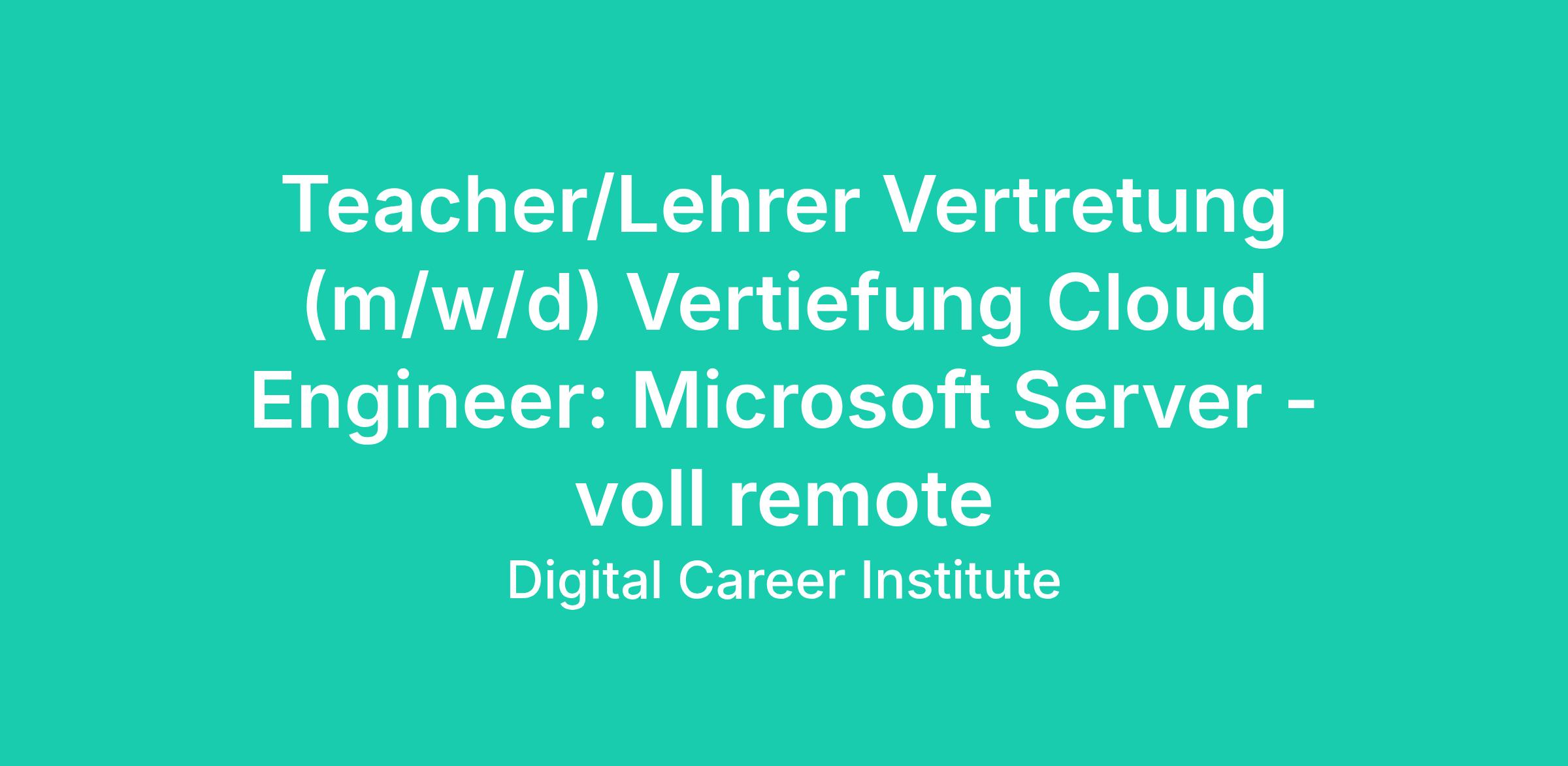 Teacher/Lehrer Vertretung (m/w/d) Vertiefung Cloud Engineer: Microsoft Server - voll remote