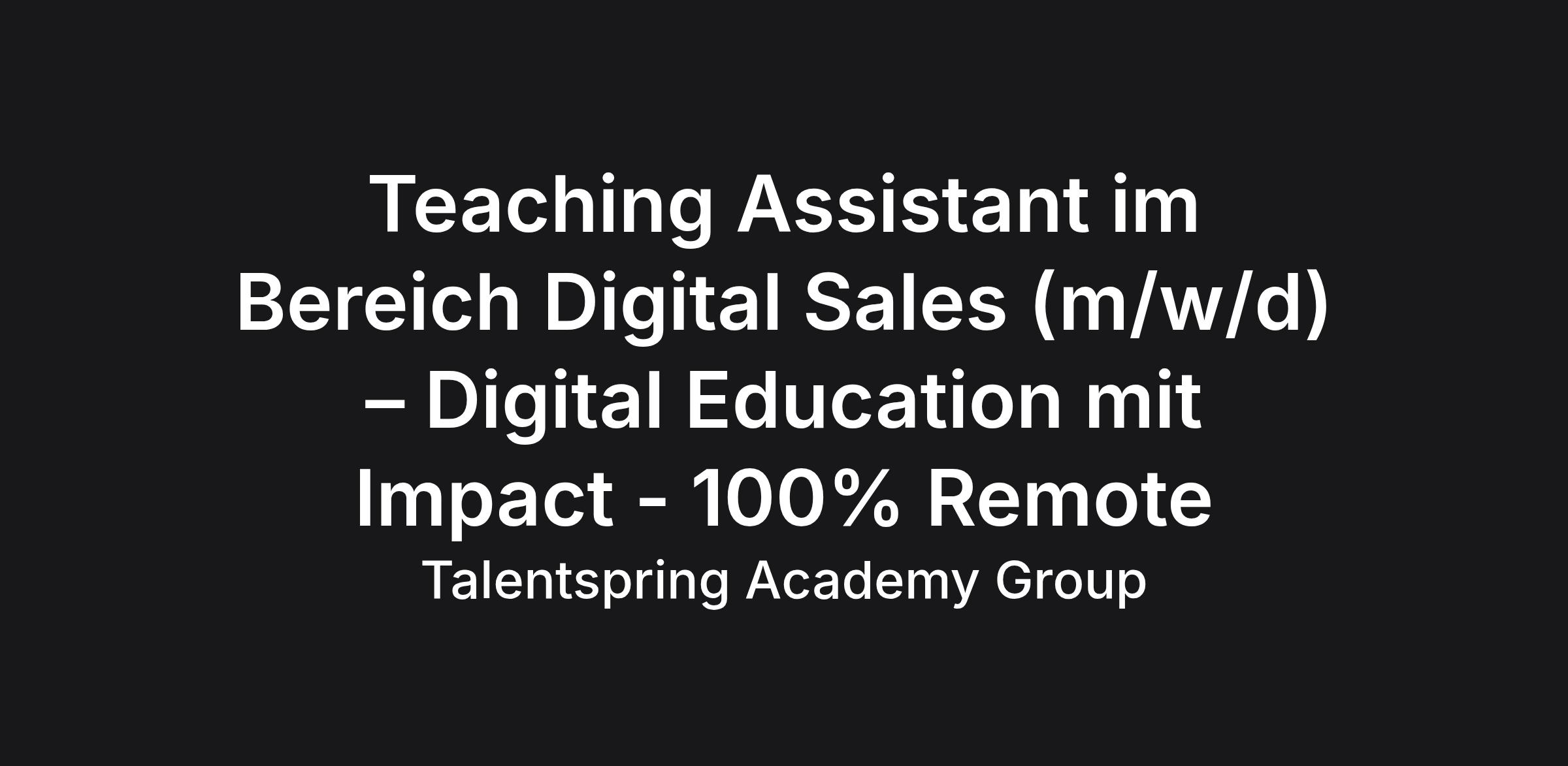 Teaching Assistant im Bereich Digital Sales (m/w/d) – Digital Education mit Impact - 100% Remote