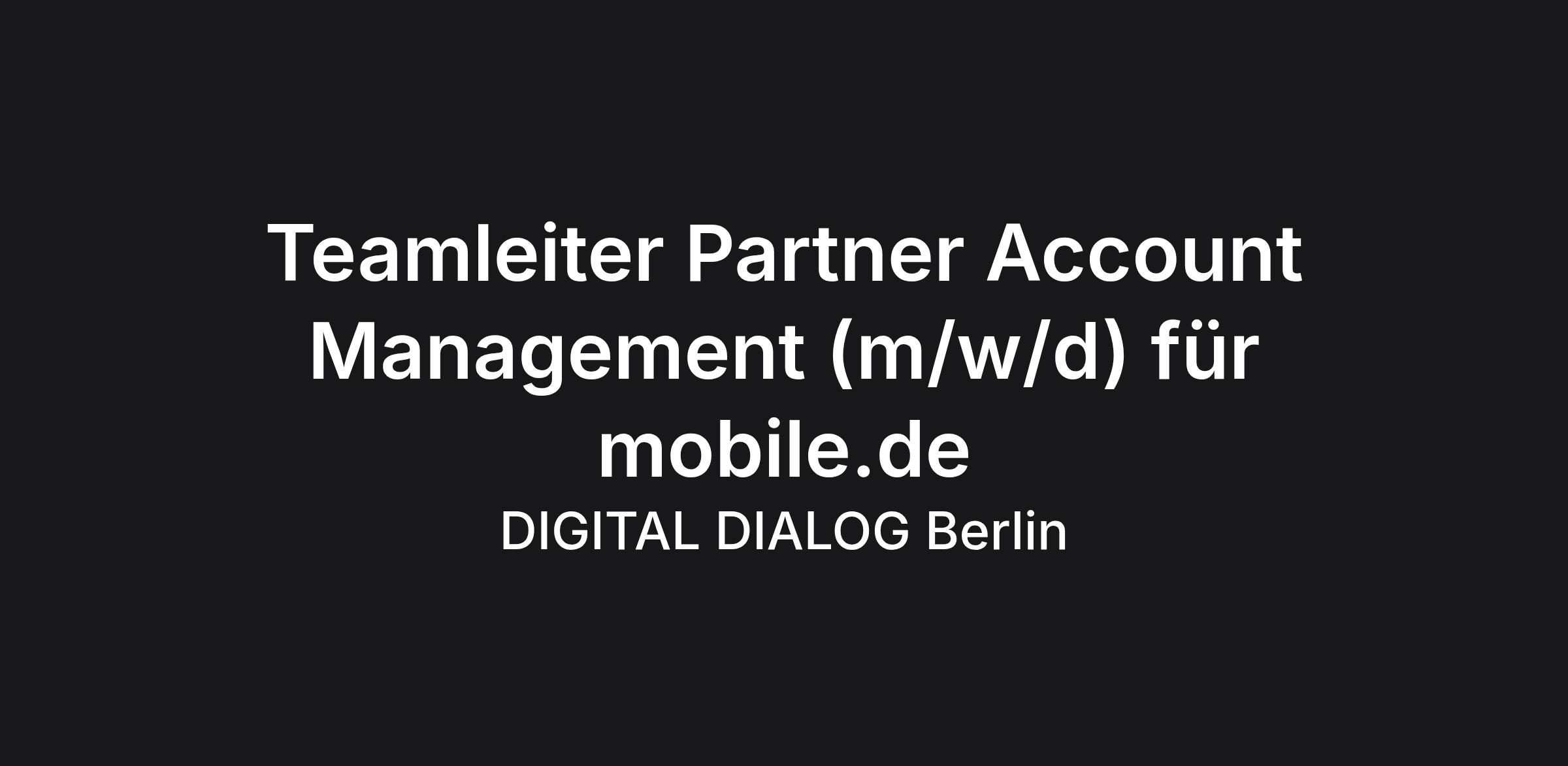 Teamleiter Partner Account Management (m/w/d) für mobile.de