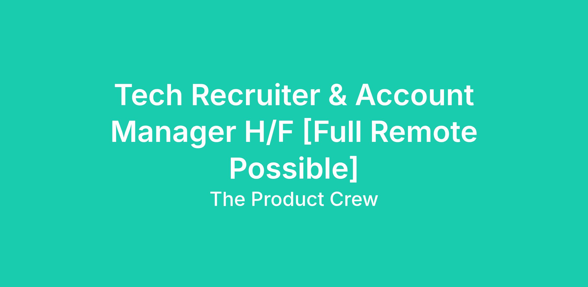 Pour accélérer cette mission, nous recrutons un Tech/Product Recruiter & Account Manager capable de délivrer au plus haut niveau et de construire des relations long terme avec nos clients et notre communauté talents.