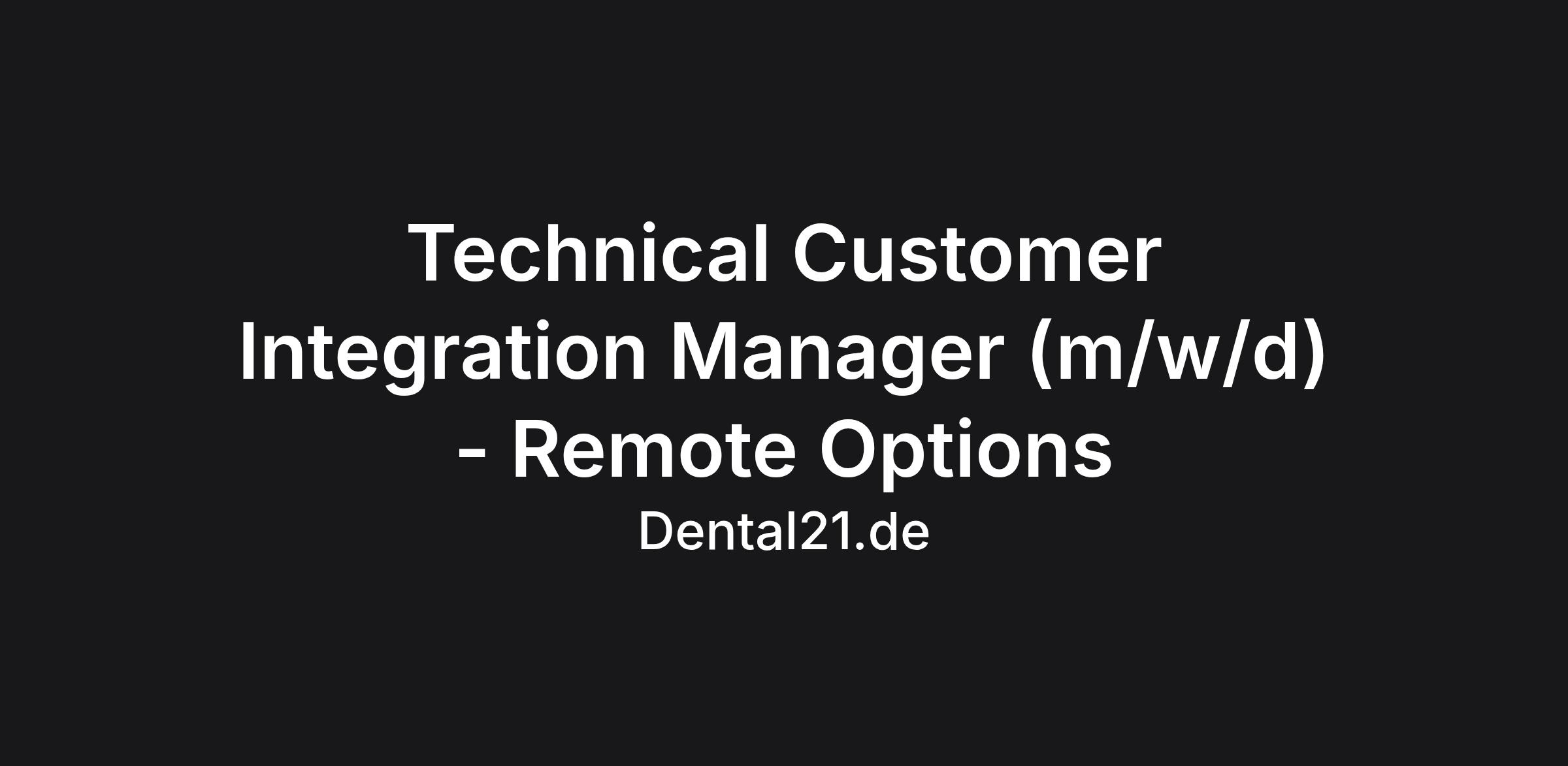 Technical Customer Integration Manager (m/w/d) - Remote Options