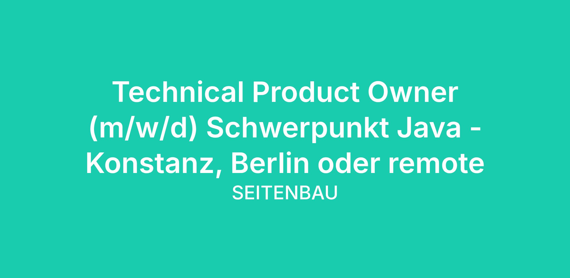 Technical Product Owner (m/w/d) Schwerpunkt Java - Konstanz, Berlin oder remote