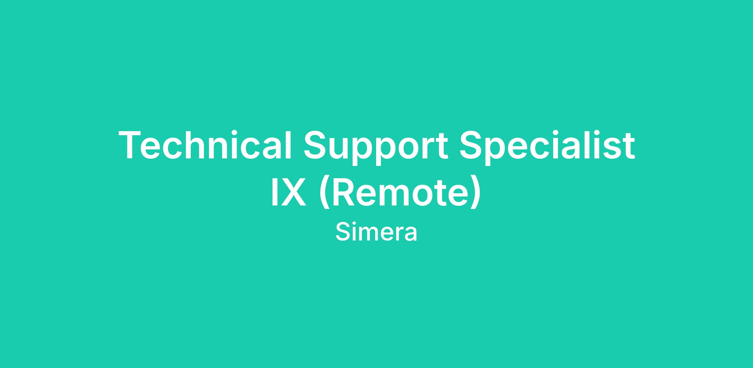 Technical Support Specialist IX (Remote)