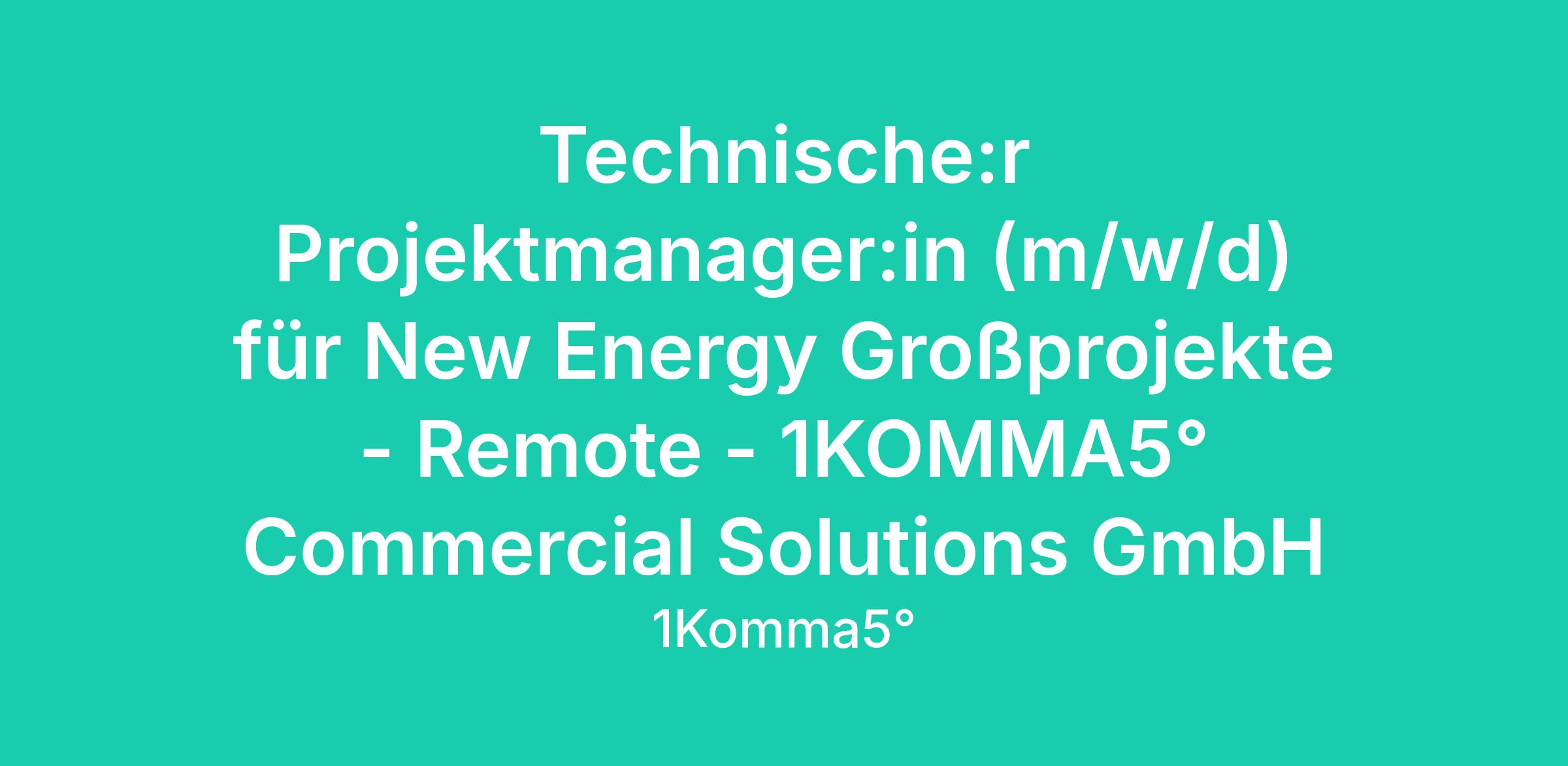 Technische:r Projektmanager:in (m/w/d) für New Energy Großprojekte - Remote - 1KOMMA5° Commercial Solutions GmbH