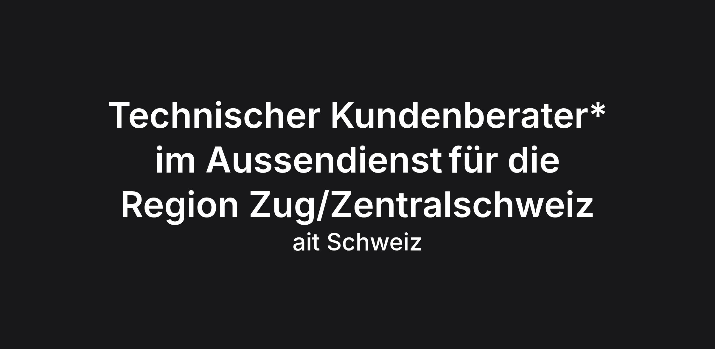 Technischer Kundenberater* im Aussendienst für die Region Zug/Zentralschweiz