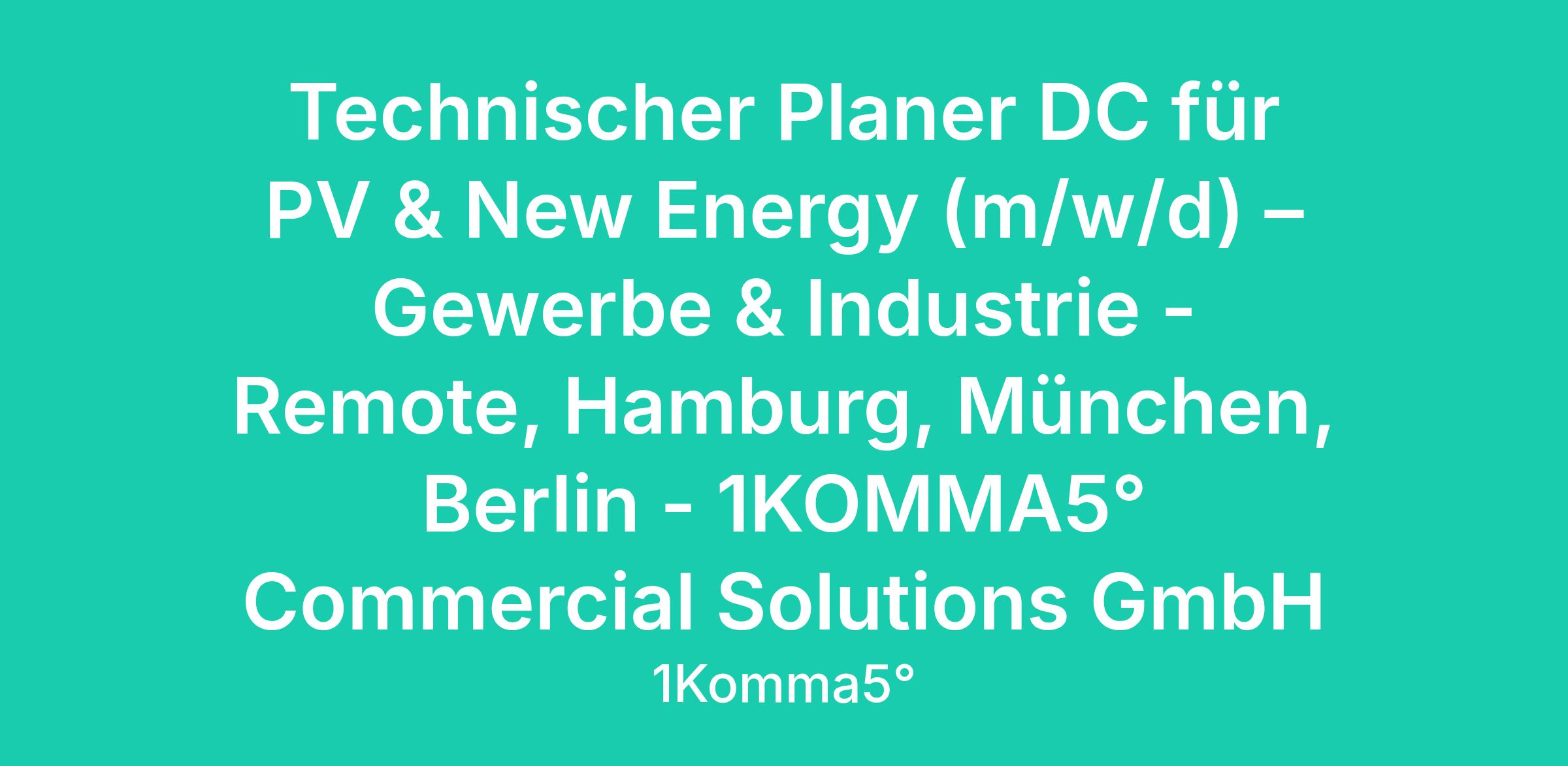 Technischer Planer DC für PV & New Energy (m/w/d) – Gewerbe & Industrie - Remote, Hamburg, München, Berlin - 1KOMMA5° Commercial Solutions GmbH