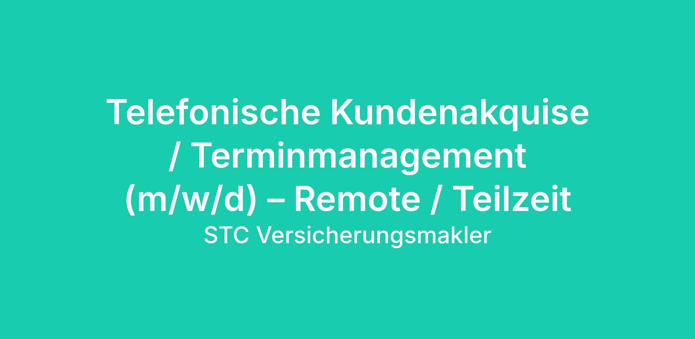 Telefonische Kundenakquise / Terminmanagement (m/w/d) – Remote / Teilzeit