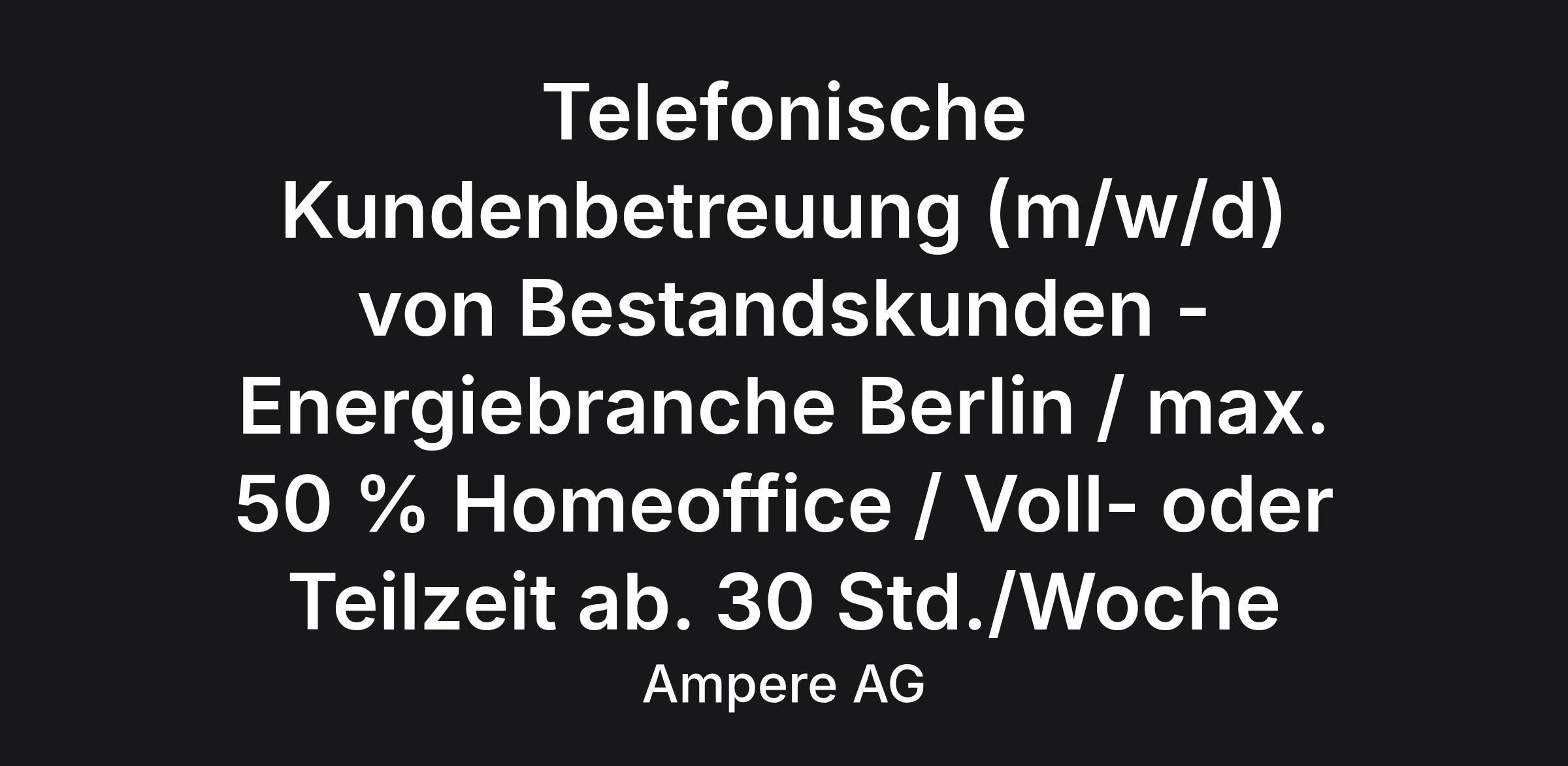 Telefonische Kundenbetreuung (m/w/d) von Bestandskunden - Energiebranche Berlin / max. 50 % Homeoffice / Voll- oder Teilzeit ab. 30 Std./Woche