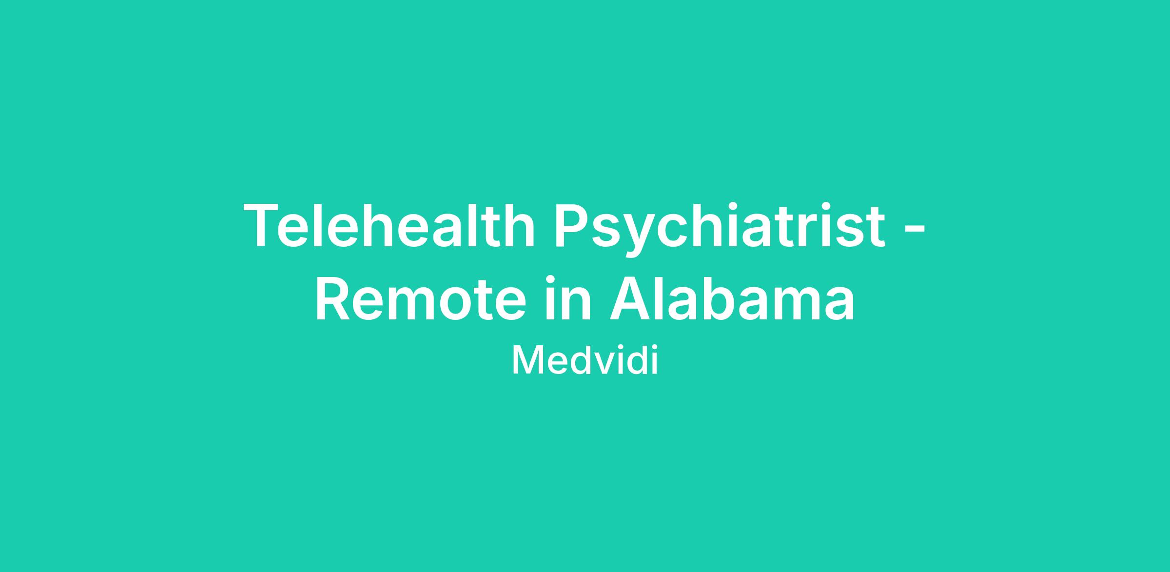 MEDvidi Health is now looking for Telehealth Mental health Providers to join our team in Alabama (100% remote).