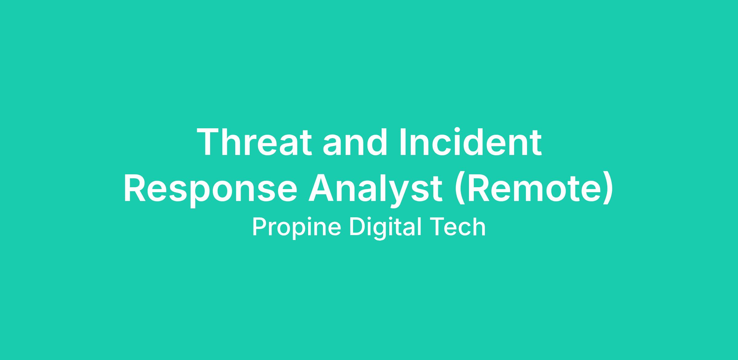 Threat and Incident Response Analyst (Remote)