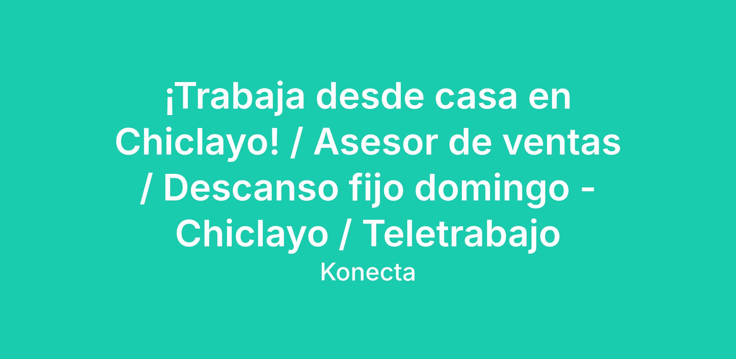 ¡Trabaja desde casa en Chiclayo! / Asesor de ventas / Descanso fijo domingo - Chiclayo / Teletrabajo